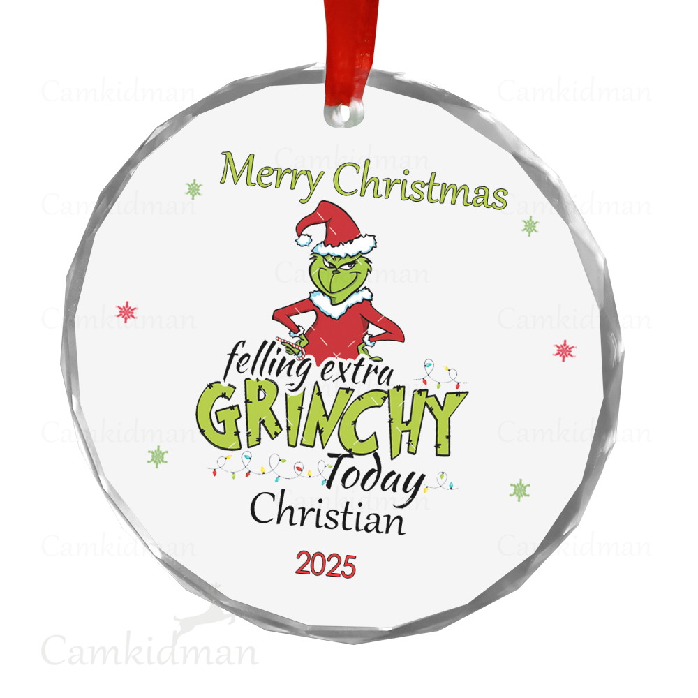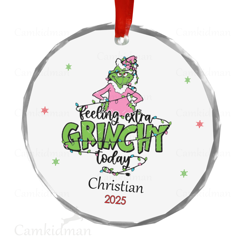 Feeling Extra Grinchy Today 2025 Round Glass Christmas Ornament 2025 Personalized Name