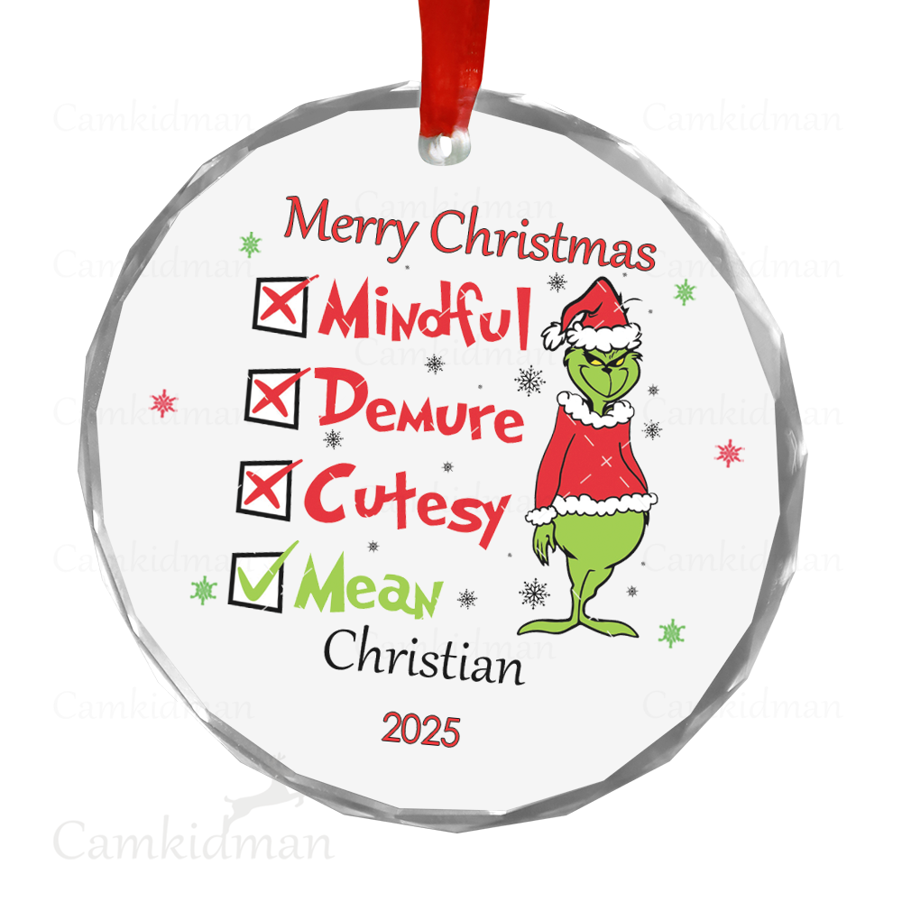 Funny Grinch Naughty Nice Holiday Decor gifts kids Glass Christmas Ornament