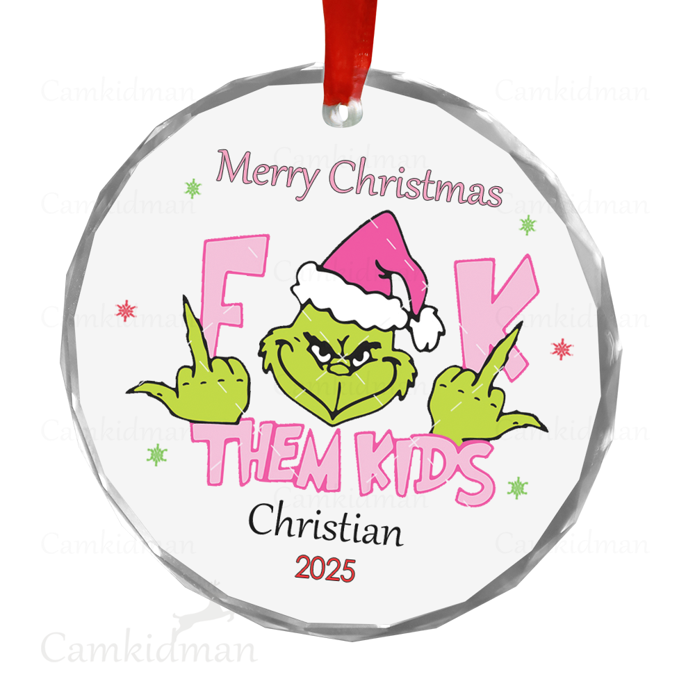 Funny Grinch Quote 2025 F Them Kids Glass Christmas Ornament 2025 Personalized Name