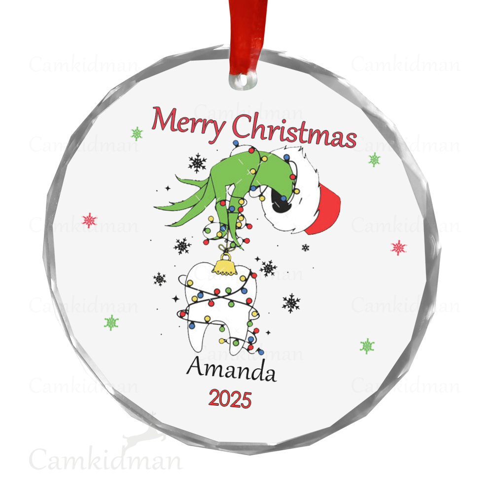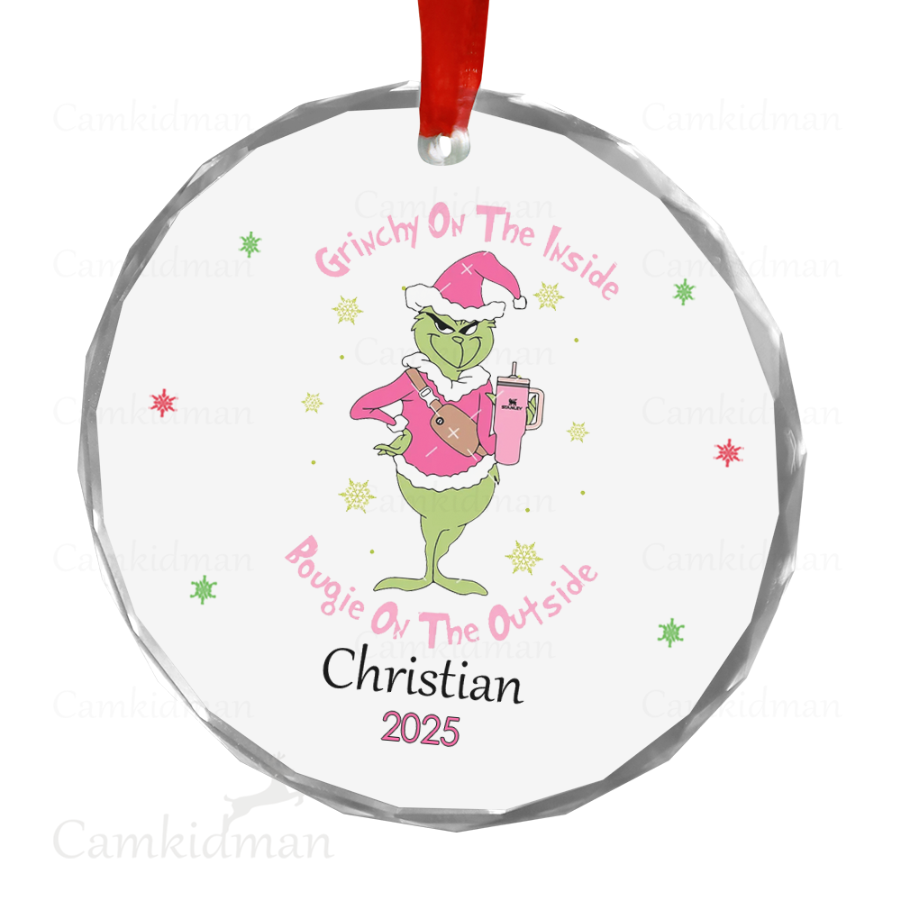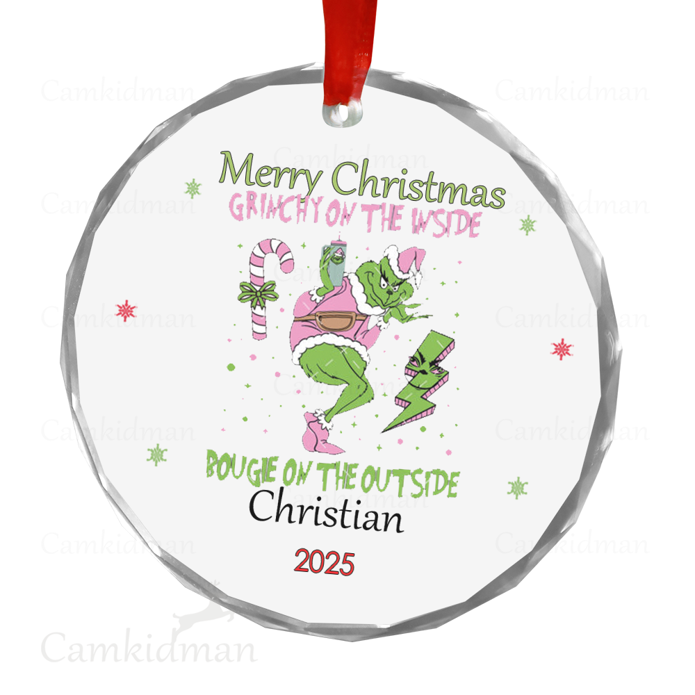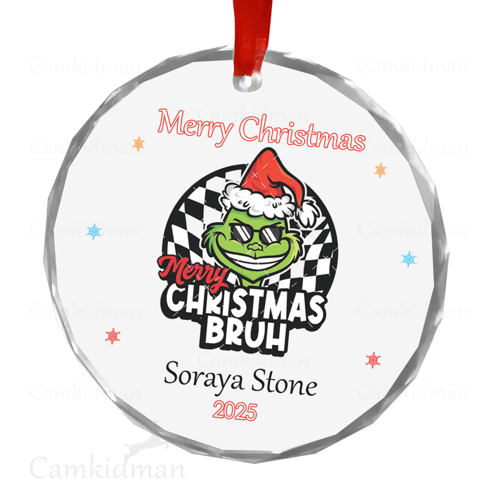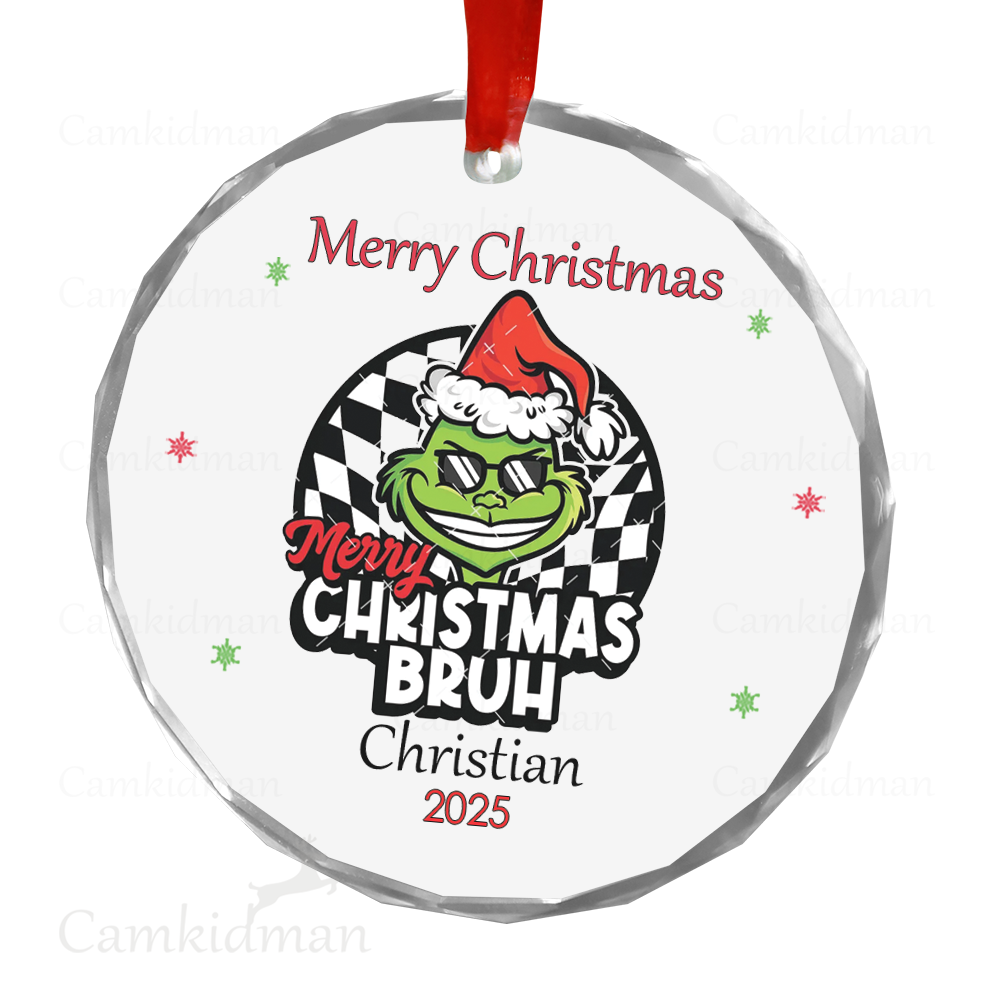 Grinch Glass Christmas Ornament 2025 Personalized Name Bruh gifts