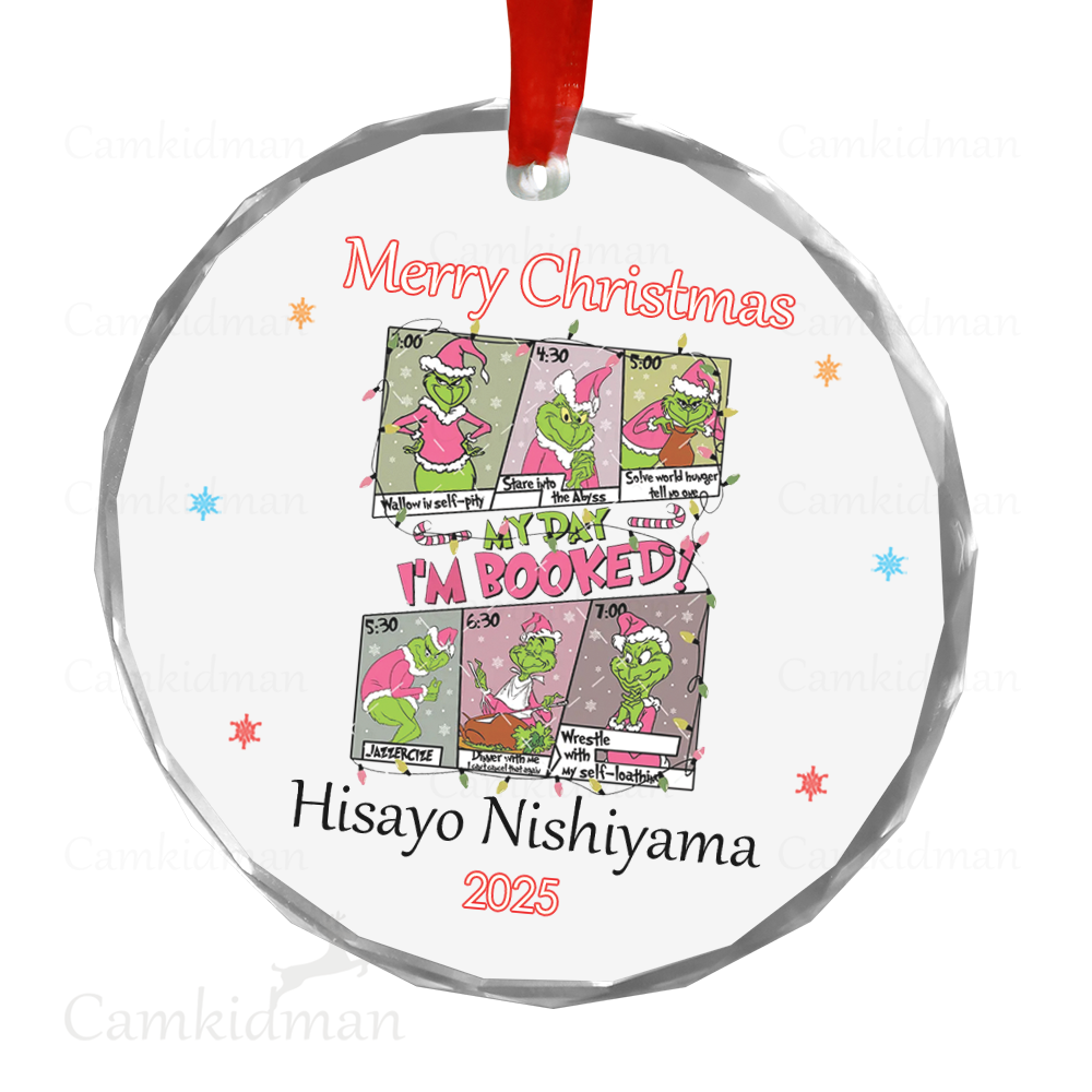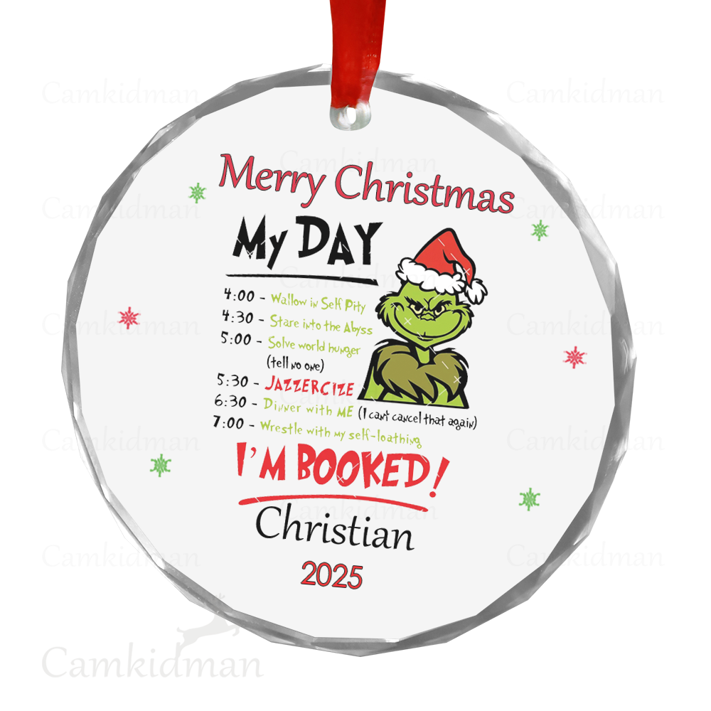 Grinch Funny Quote My Day Booked 2025 Holiday Glass Christmas Ornament