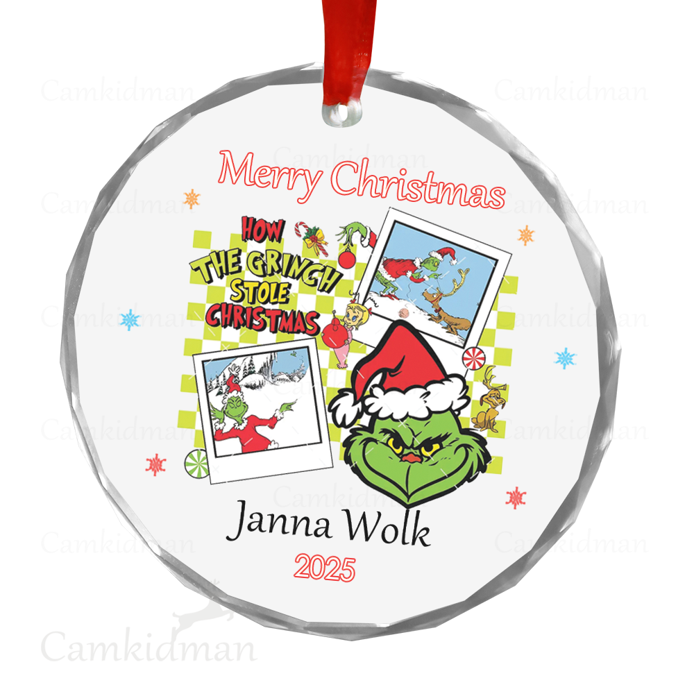 Grinch Glass Christmas Ornament 2025 Personalized Name Cards tree
