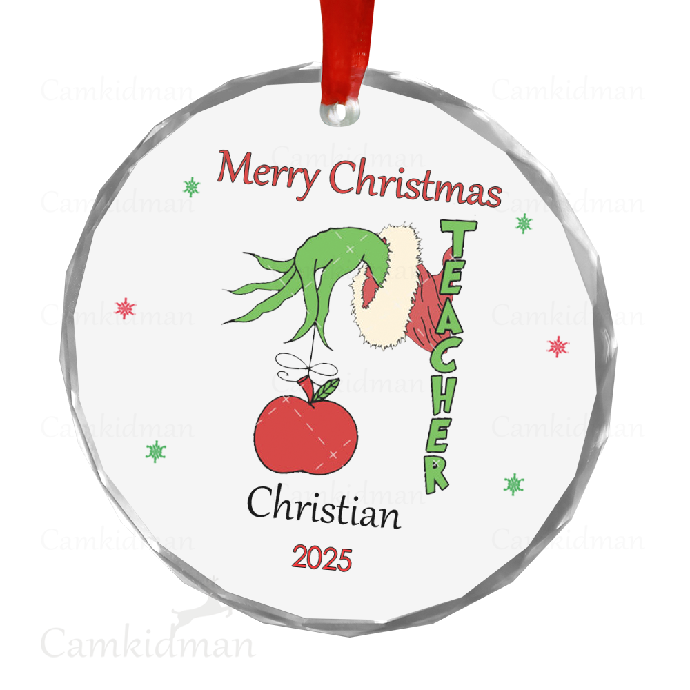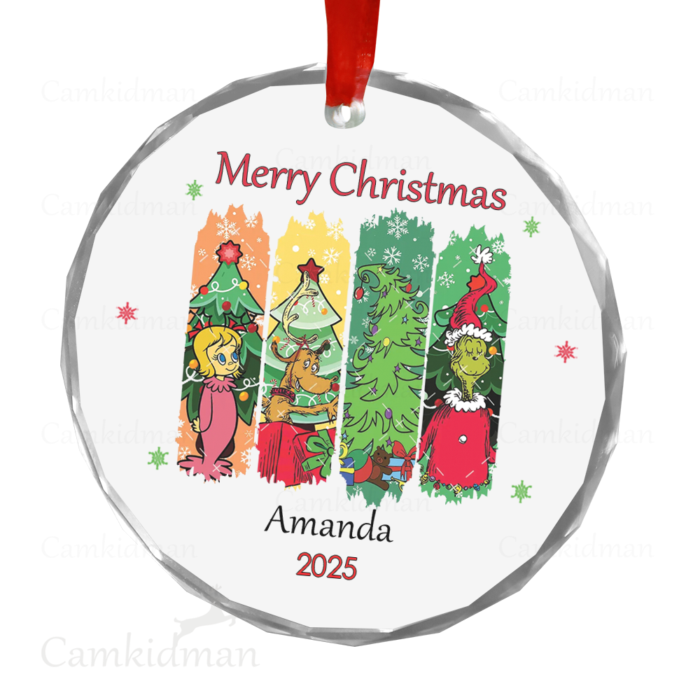 Grinch Glass Christmas Ornament 2025 Personalized Name
