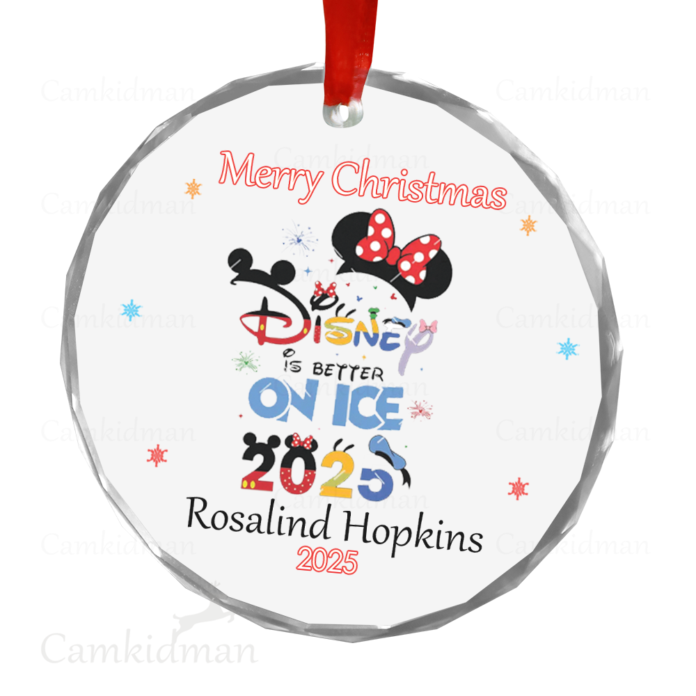 Holiday Disney Style Ice Show Round Stocking Stuffer 2025 Glass Christmas Ornament