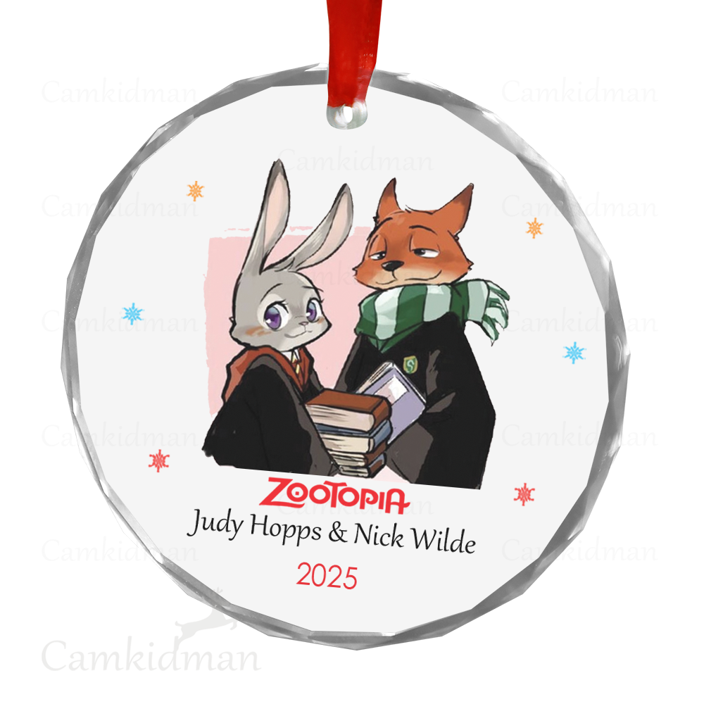 Holiday Fox And Bunny Couple Art Round Stocking Stuffer 2025 Glass Christmas Ornament
