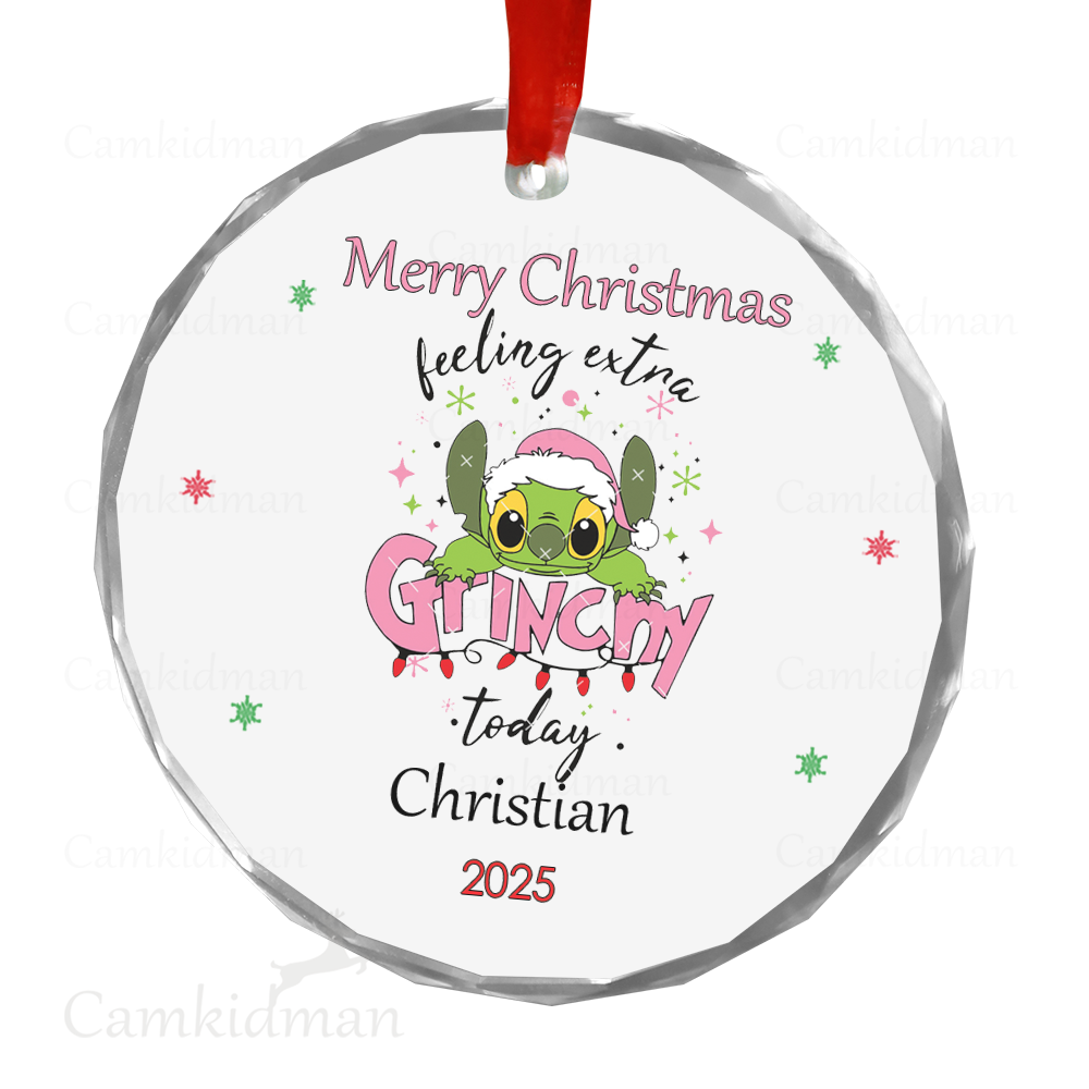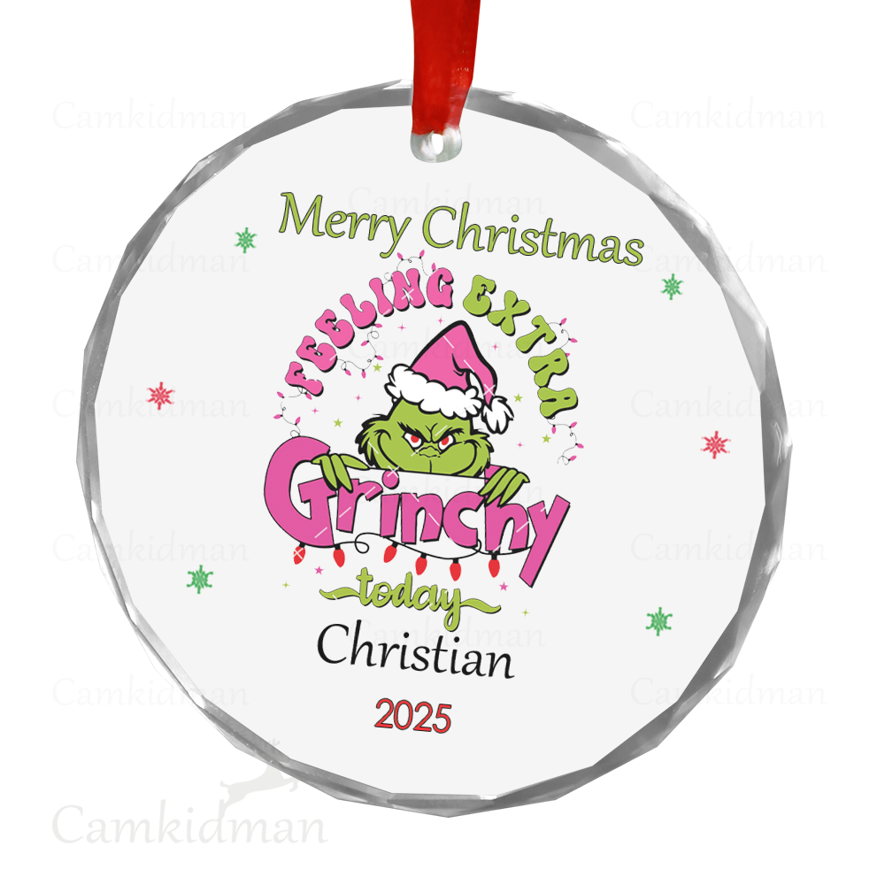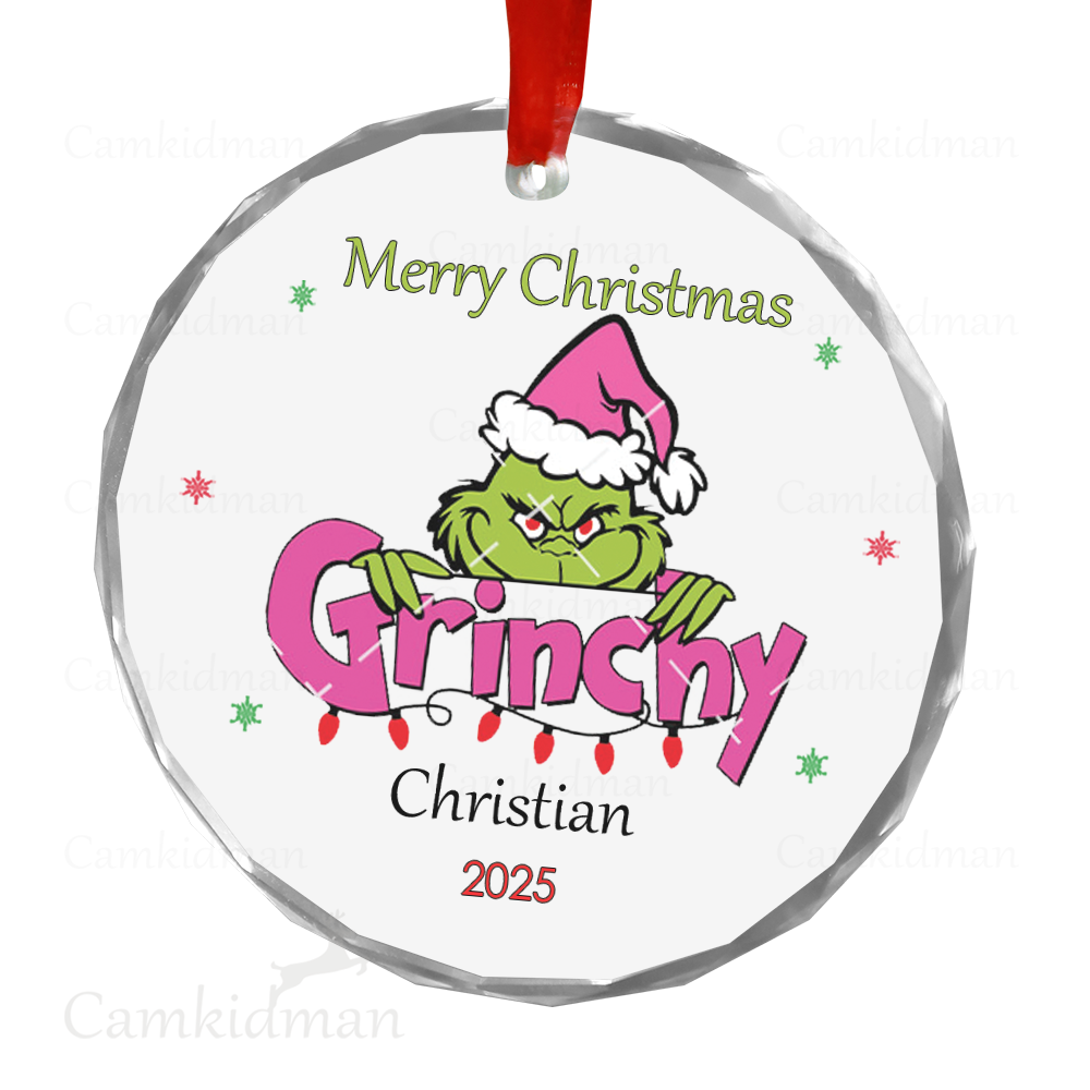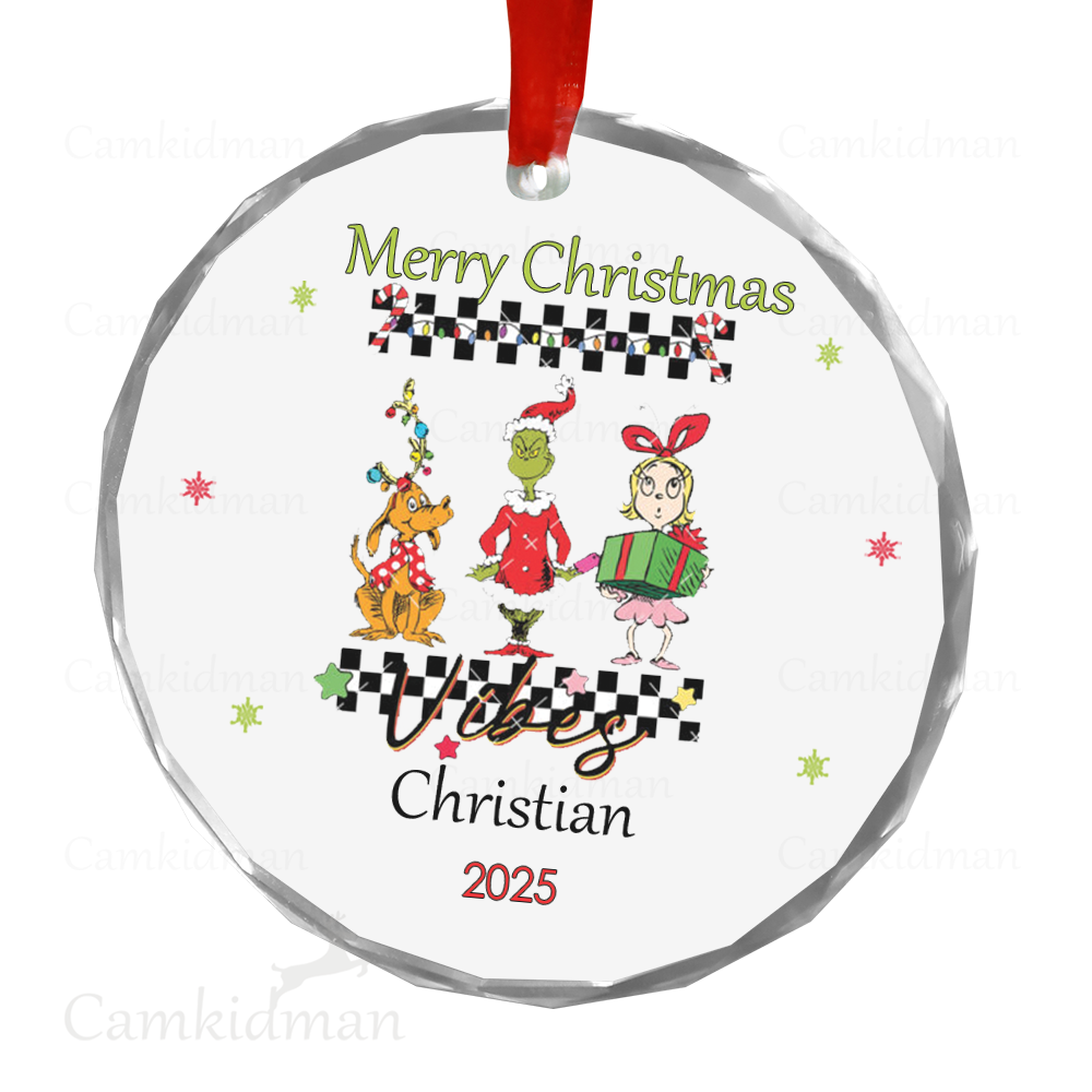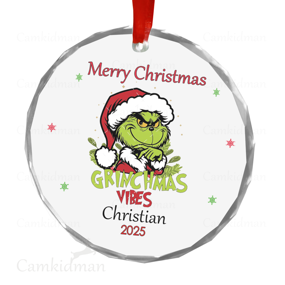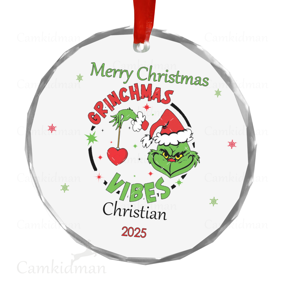 Grinchmas Vibes Glass Christmas Ornament 2025 Personalized Name Gift gifts family