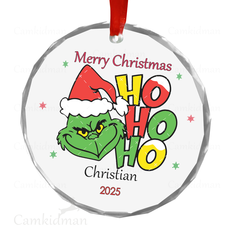 Ho Ho Ho Grinch Funny Holiday Decor 2025 Round Glass Christmas Ornament 2025 Personalized Name