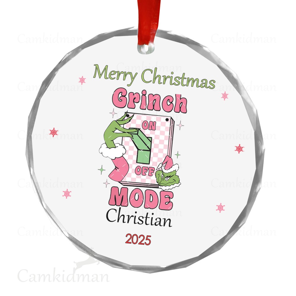 Holiday Grinch Mode Round Stocking Stuffer 2025 Glass Christmas Ornament