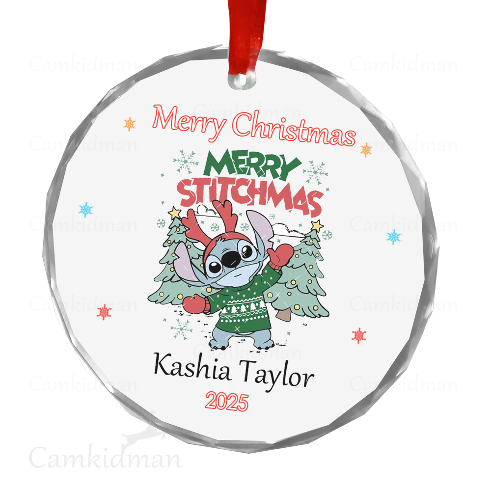 Merry Stitchmas Personalized Name 2025 Glass Ornament gifts kids