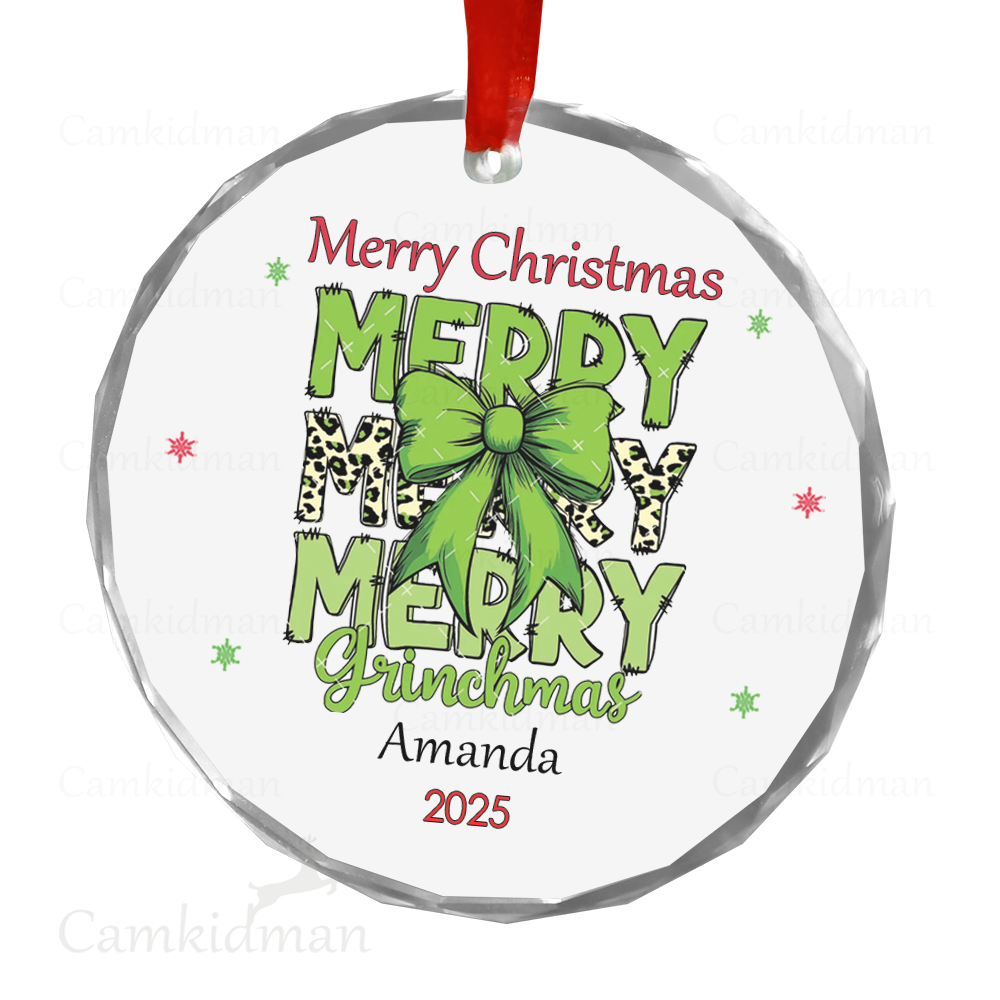 Merry Merry Merry Grinch 2025 Round Glass Christmas Ornament 2025 Personalized Name