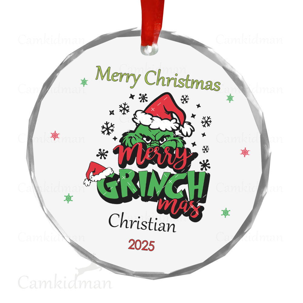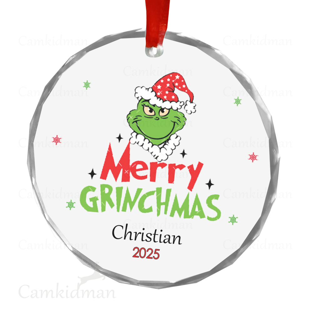 Merry Grinchmas Holiday Decor 2025 Round Glass Christmas Ornament 2025 Personalized Name