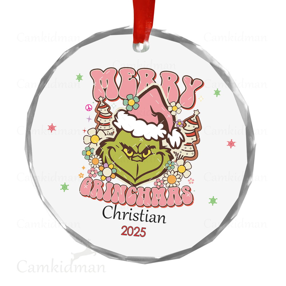 Merry Grinchmas Pink Style 2025 Glass Christmas Ornament 2025 Personalized Name