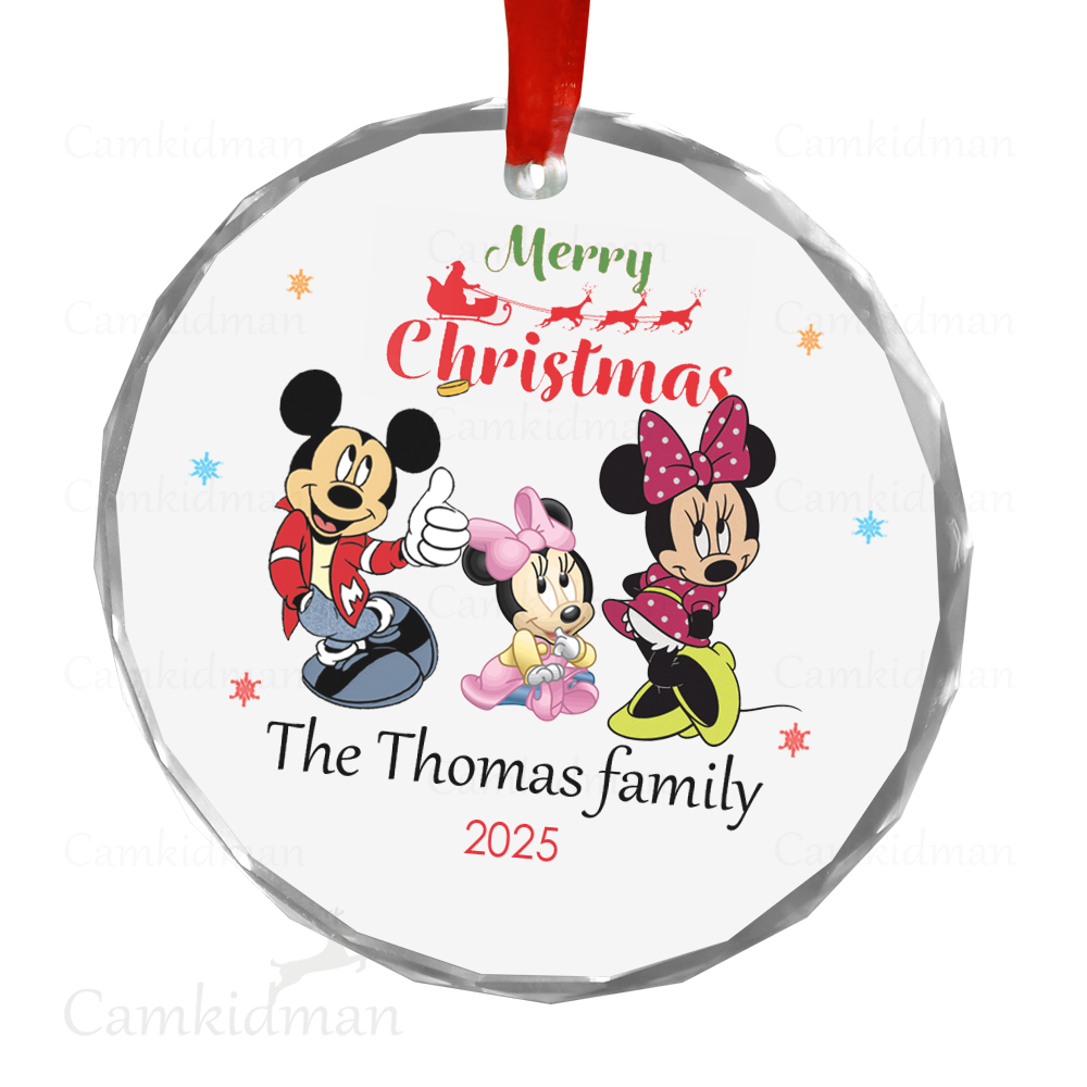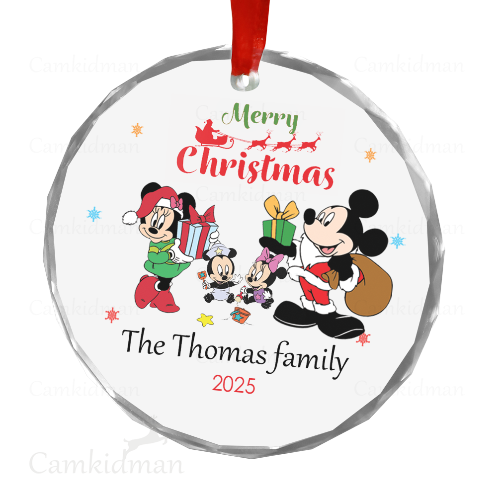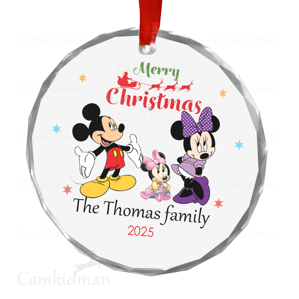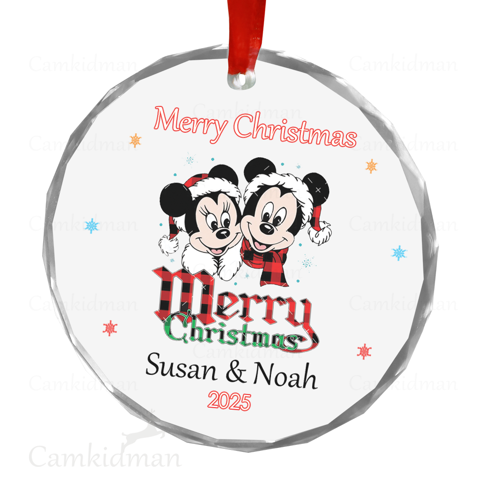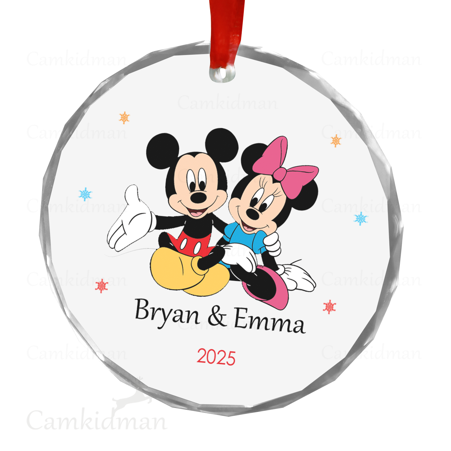 Mickey Minnie Couple Personalized Name 2025 Glass Ornament gifts kids
