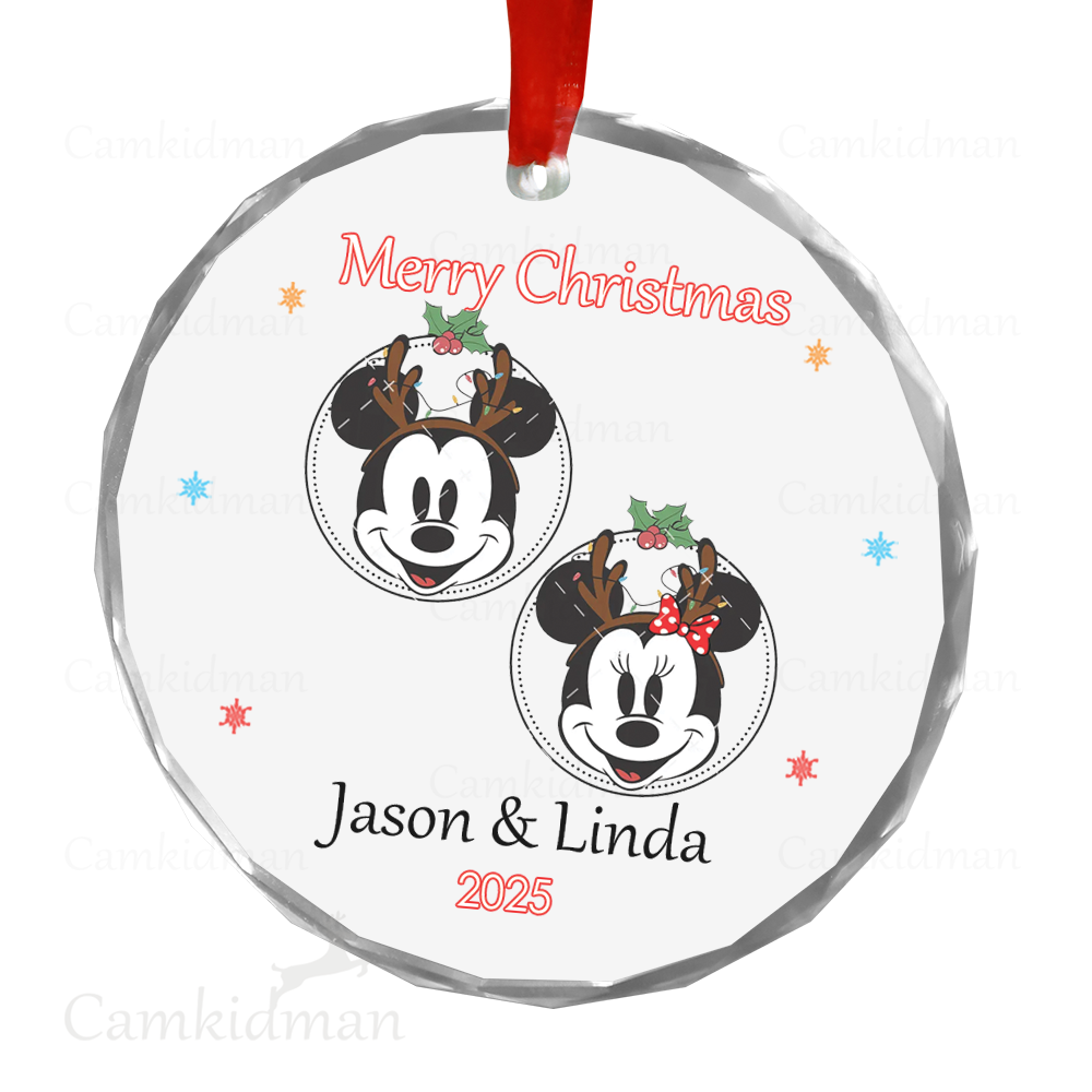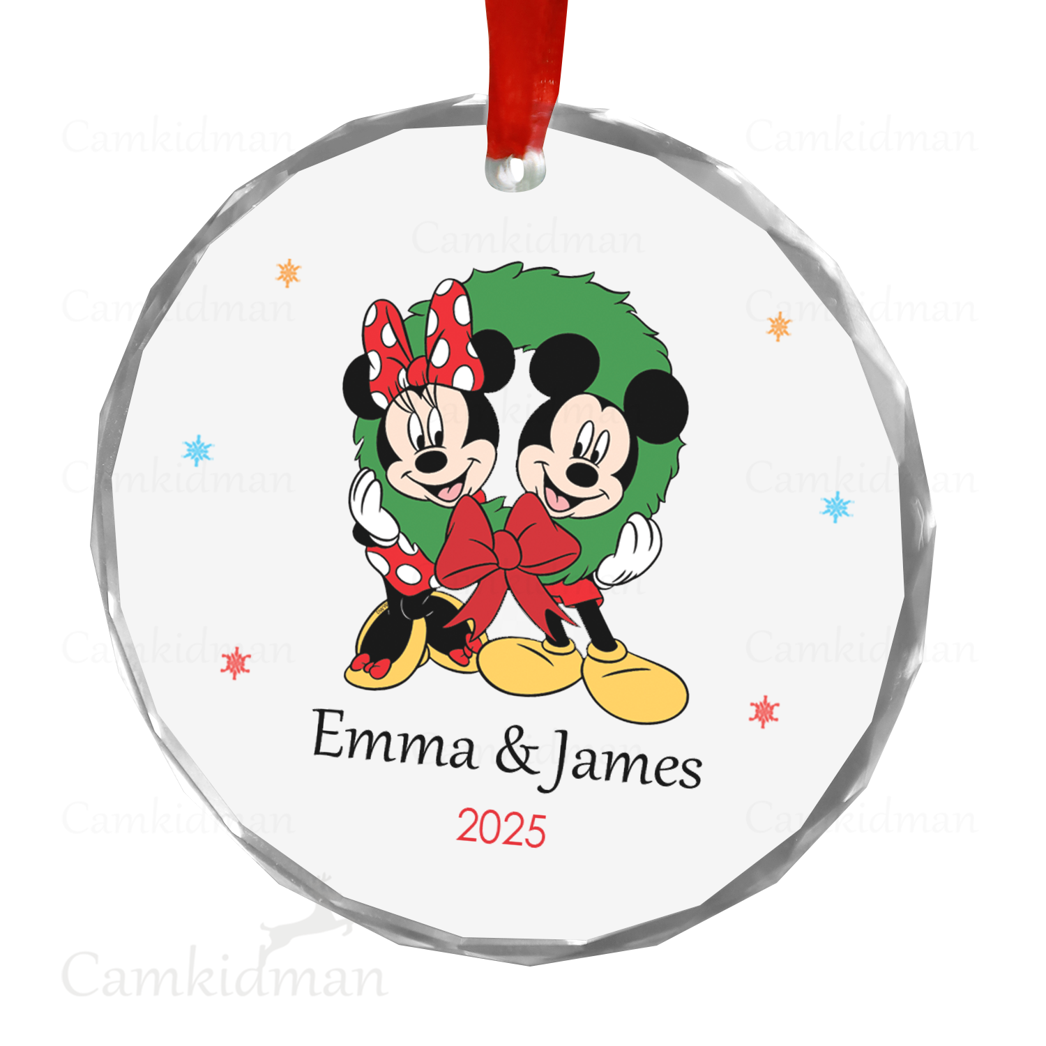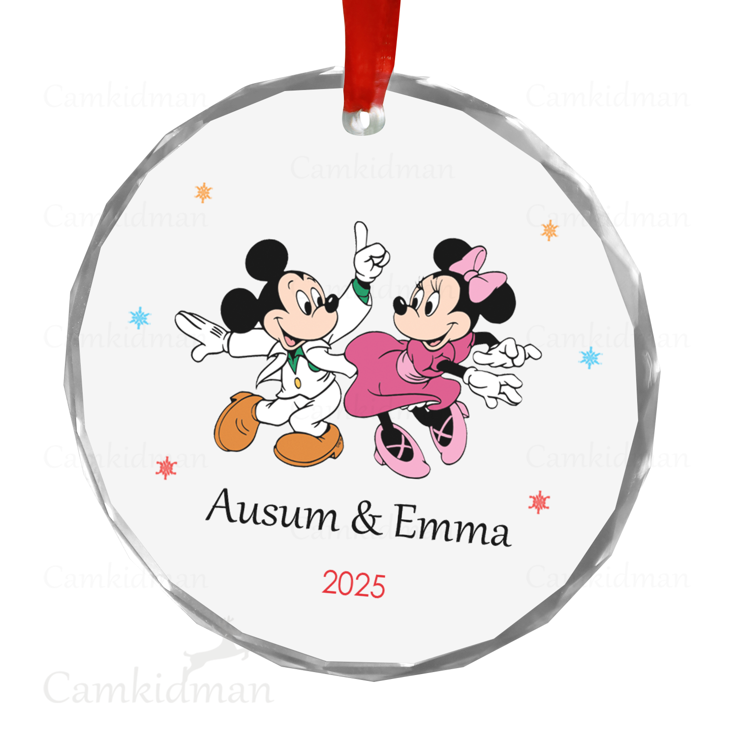 Mickey Minnie Couple Glass Christmas Ornament 2025 Personalized Name tree