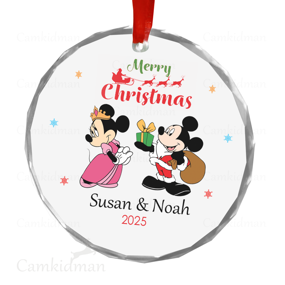 Mickey Minnie Couple Holding Gift Glass Christmas Ornament 2025 Personalized Name gifts