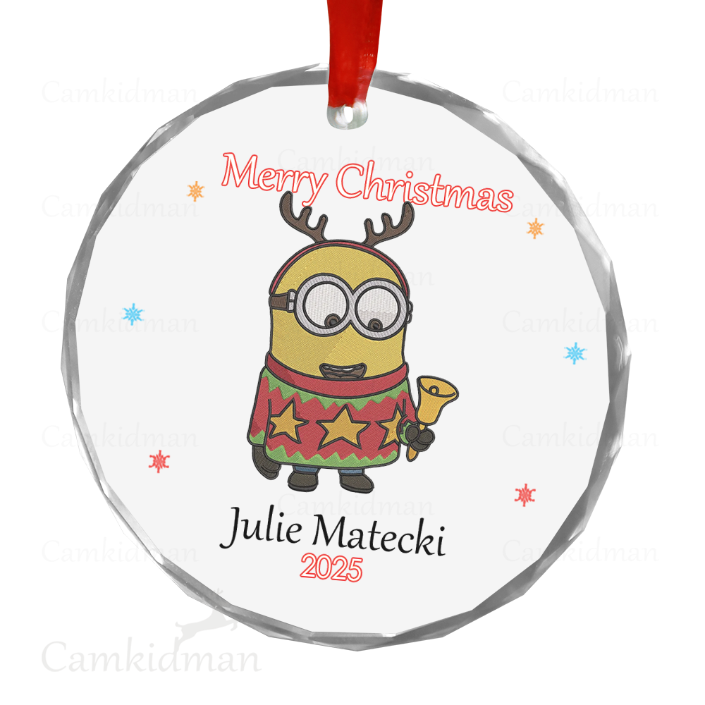 Minion Glass Christmas Ornament 2025 Personalized Name Hat gifts kids