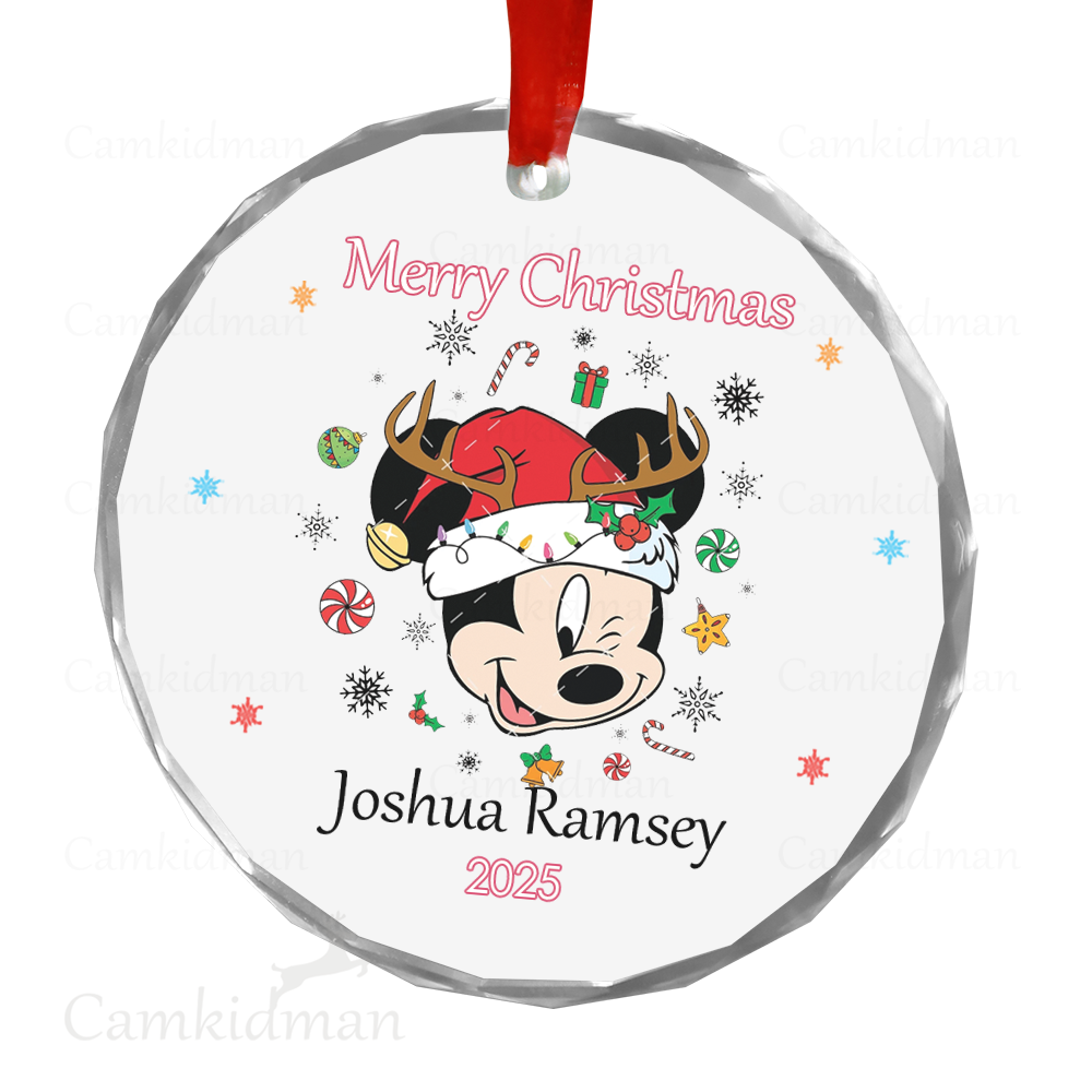 Mickey With Glass Christmas Ornament 2025 Personalized Name Lights tree