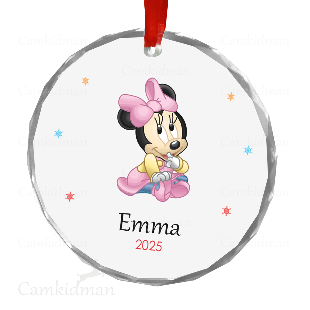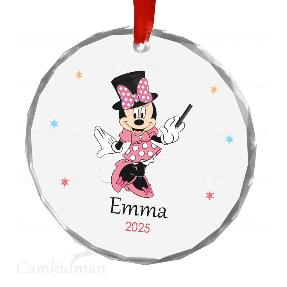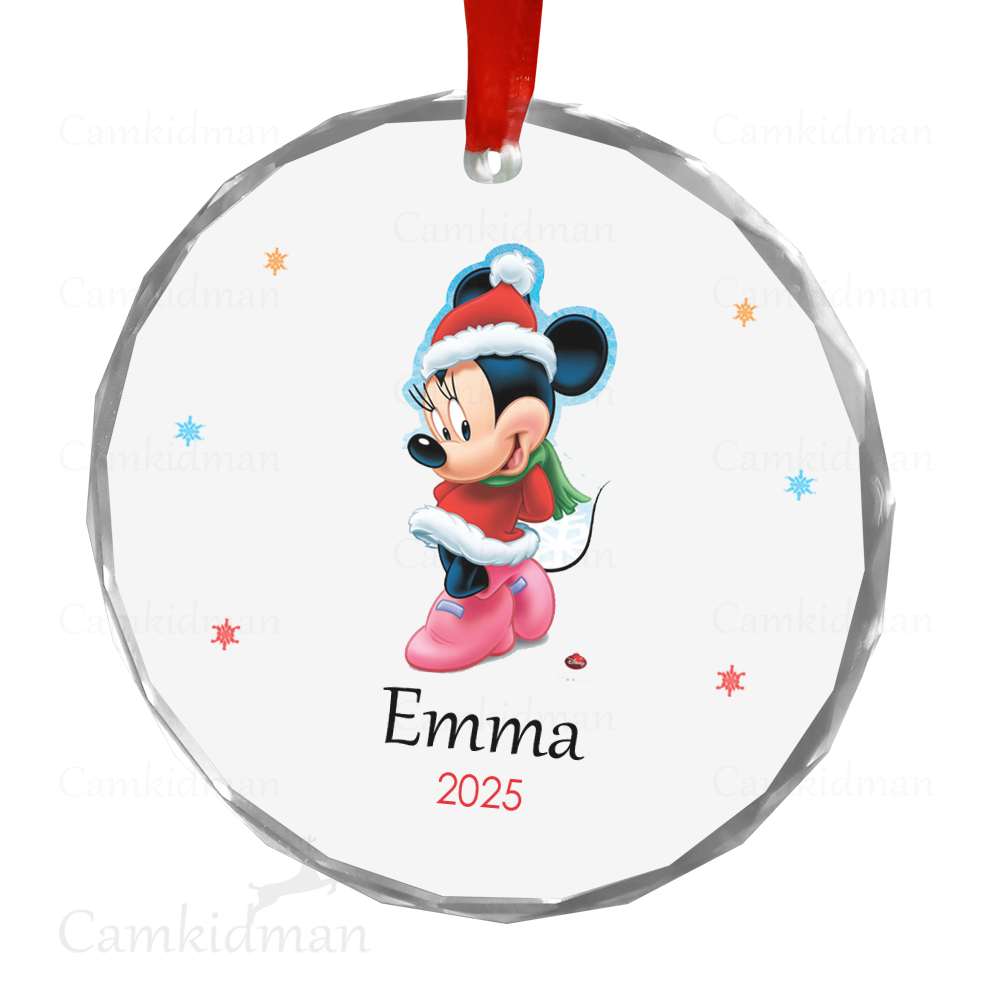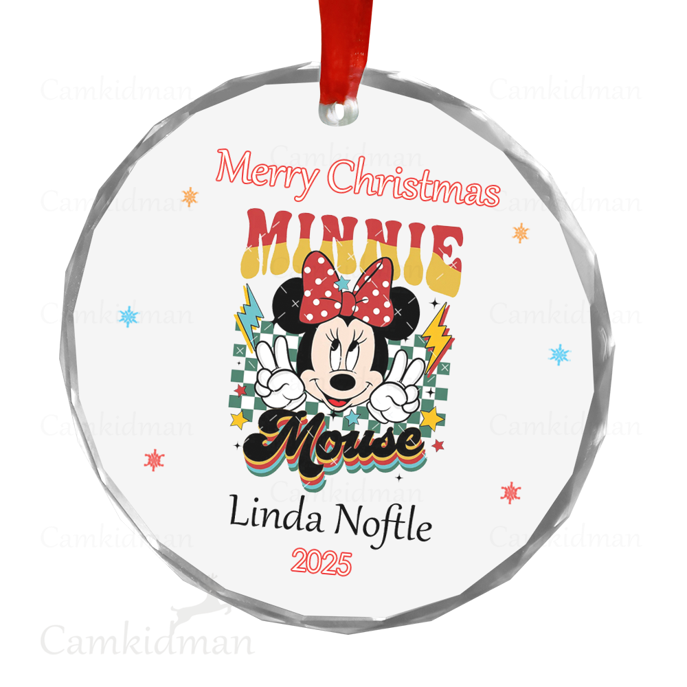 Minnie Glass Christmas Ornament 2025 Personalized Name Outfit gifts family
