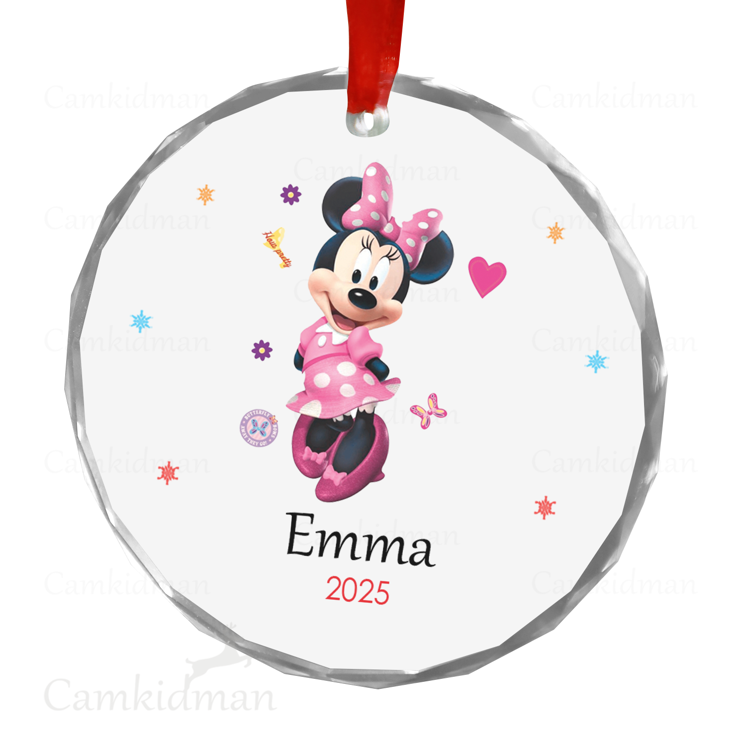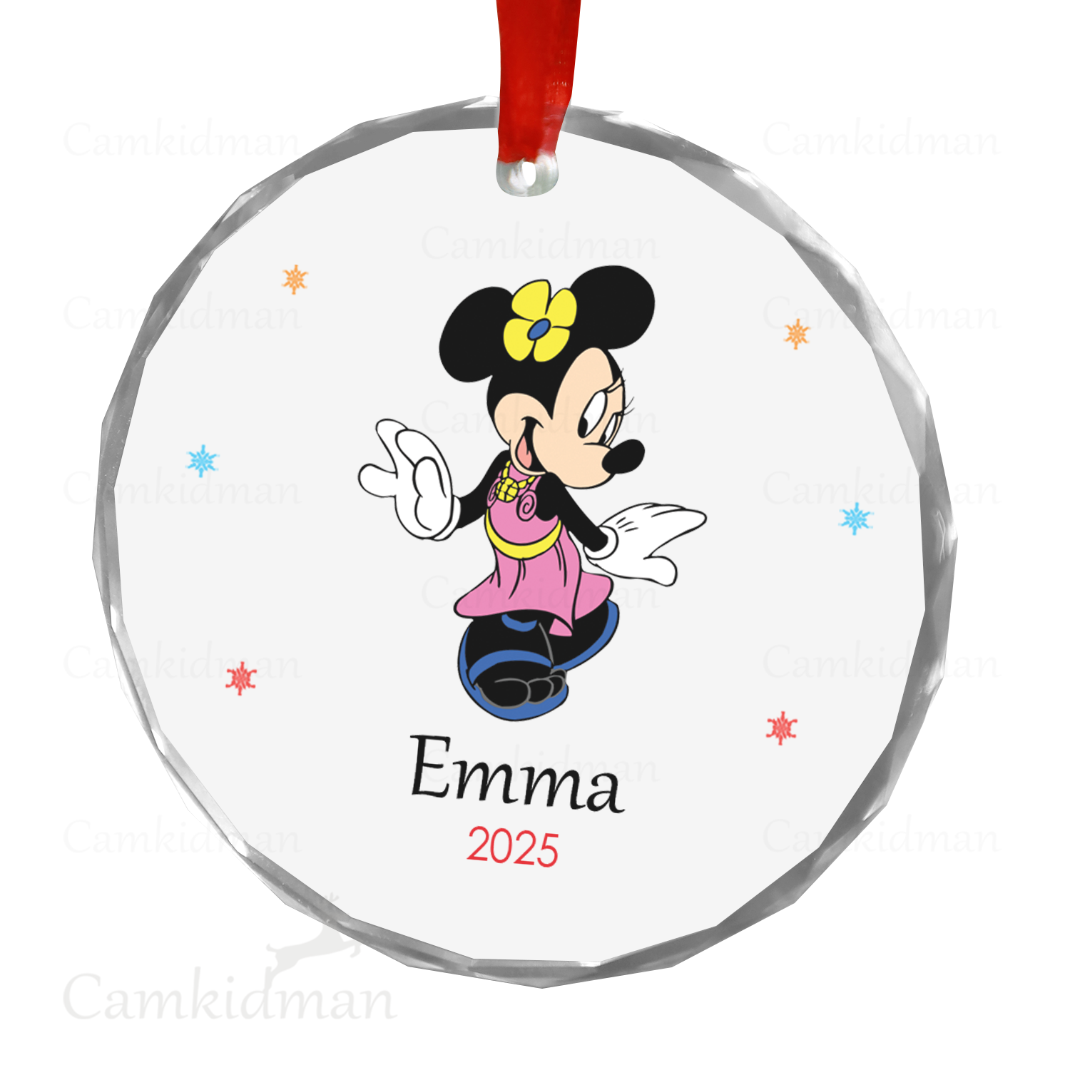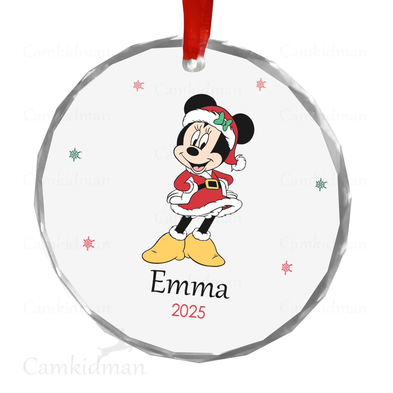 Minnie Glass Christmas Ornament 2025 Personalized Name Outfit gifts family