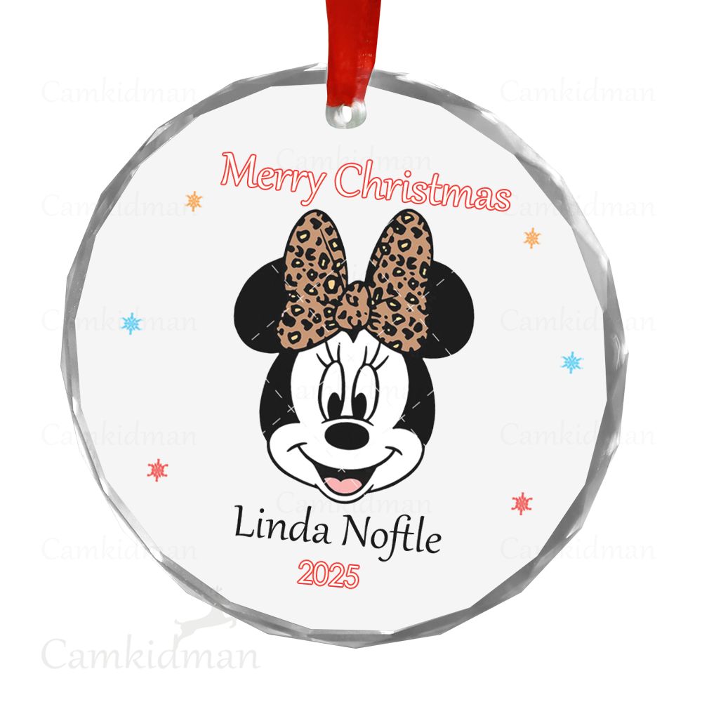 Minnie Leopard Bow Personalized Name 2025 Glass Ornament gifts family