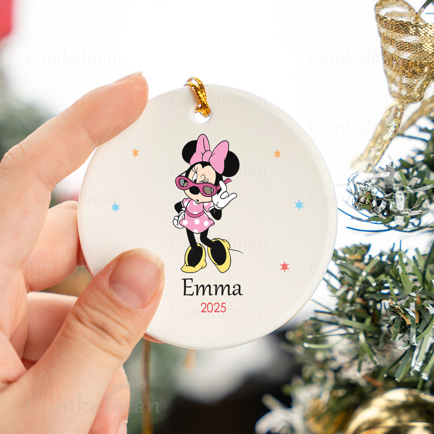 Personalized Name Baby Minnie Pink Bow 2025 Christmas Ceramic Ornament Glass Ornament gifts