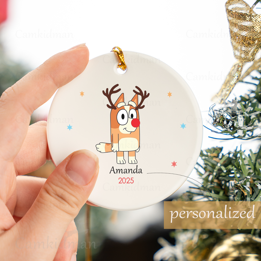 Personalized Name Bingo Bluey Character Reindeer Antlers Glass Christmas Ornament Decoration