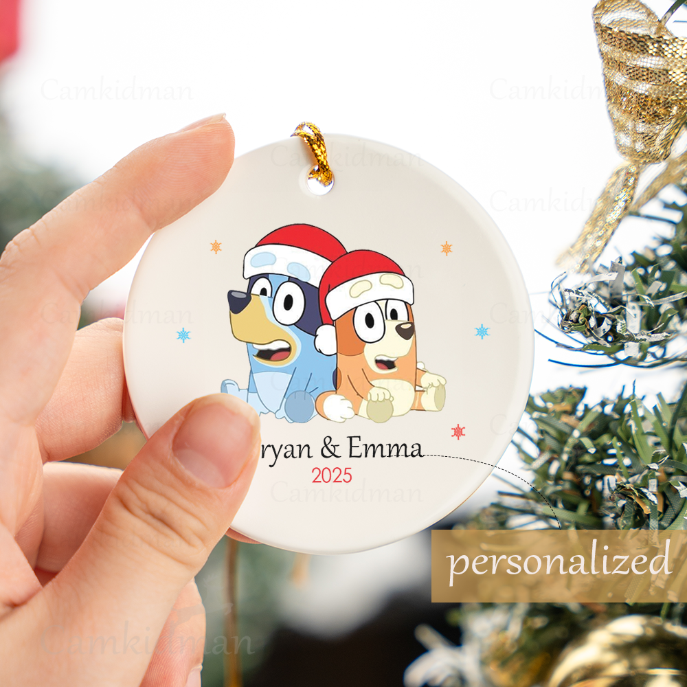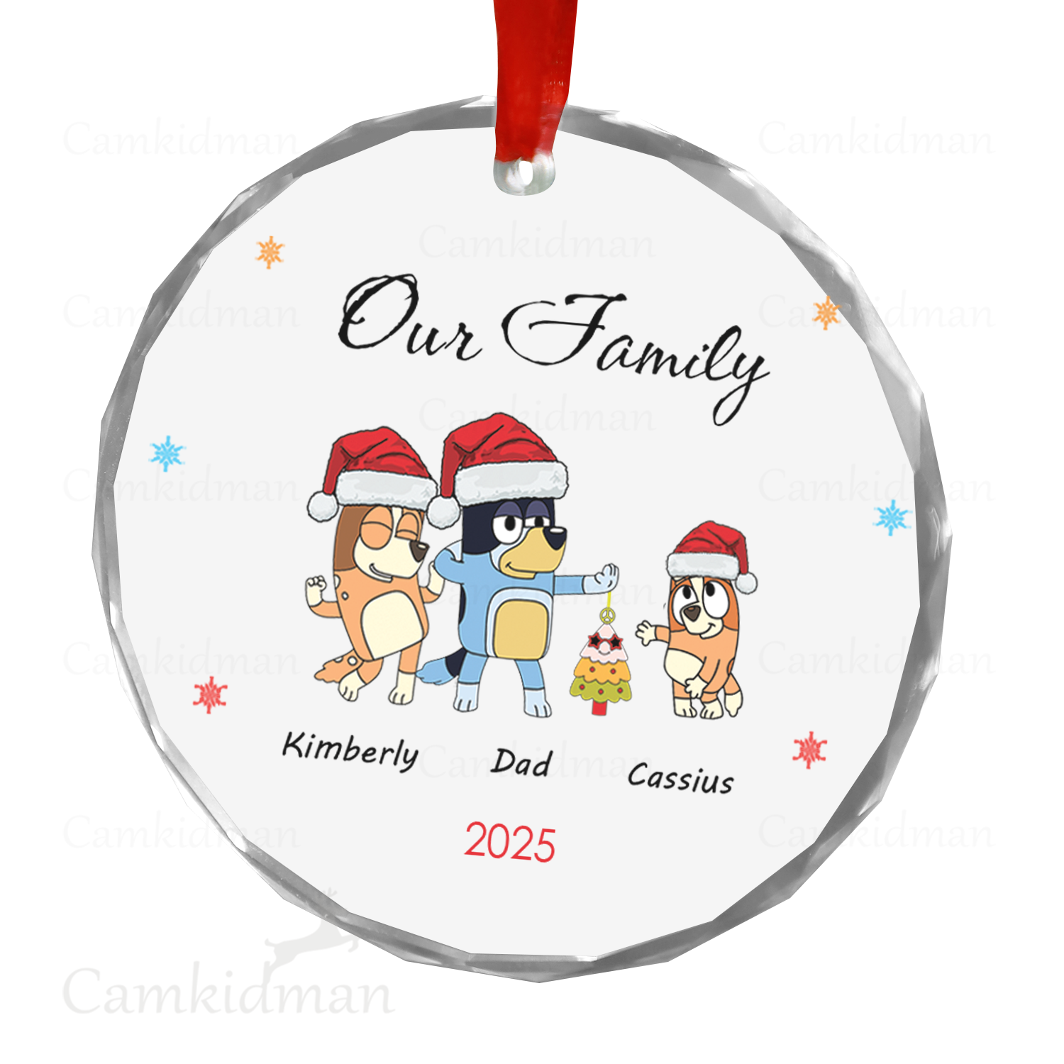 Personalized Name 2025 Bluey and Bingo Glass Christmas Ornament Holiday Decoration