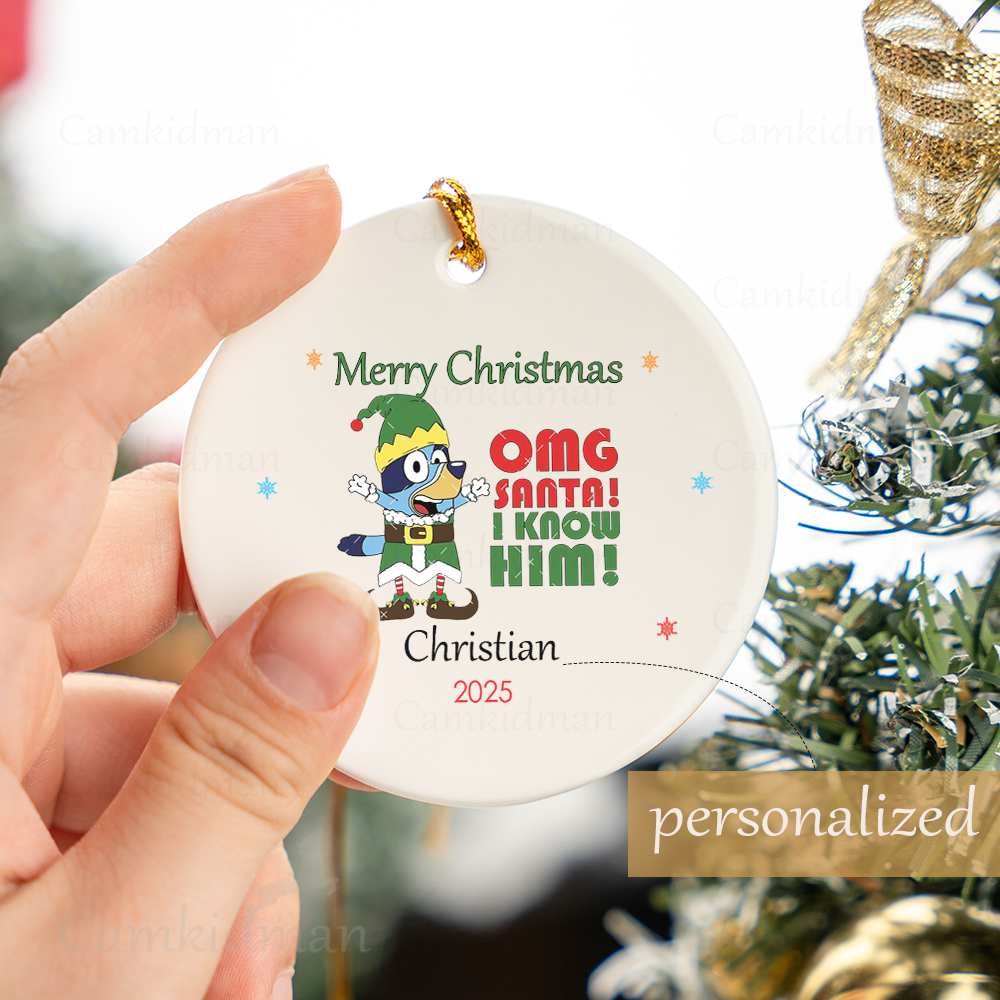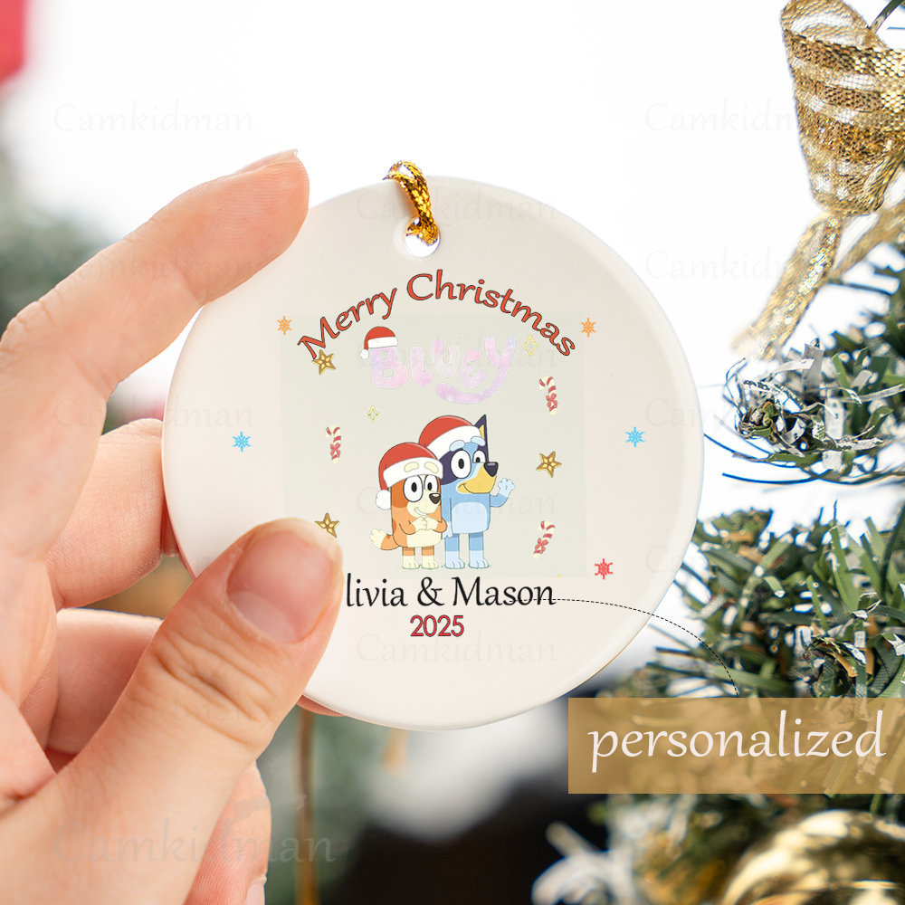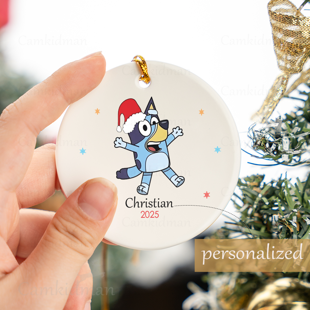 Personalized Name Bluey Cartoon Christmas Scene 2025 Glass Holiday Ceramic Ornament Glass Ornament Decoration