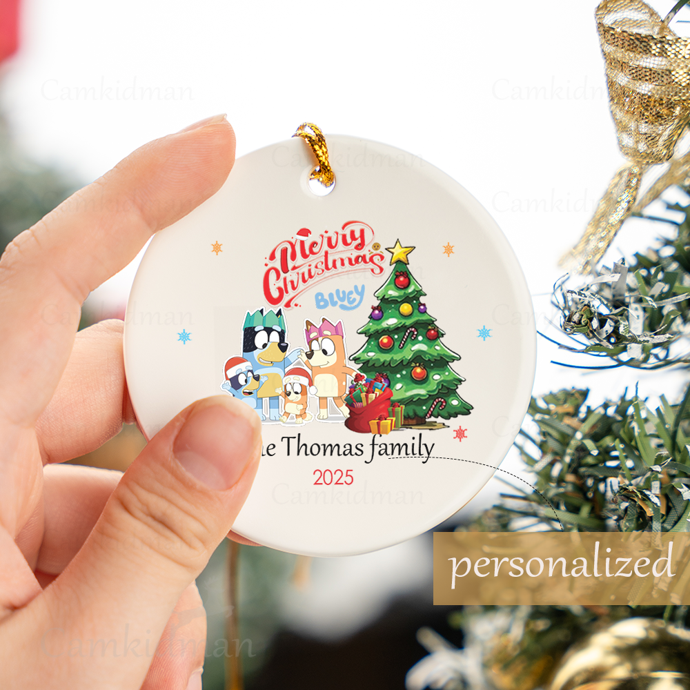 Personalized Name Bluey Cartoon Family Christmas 2025 Ceramic Ornament Glass Ornament