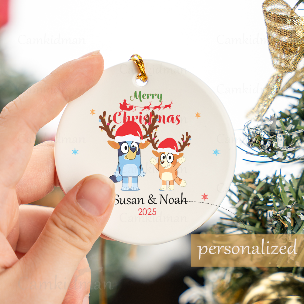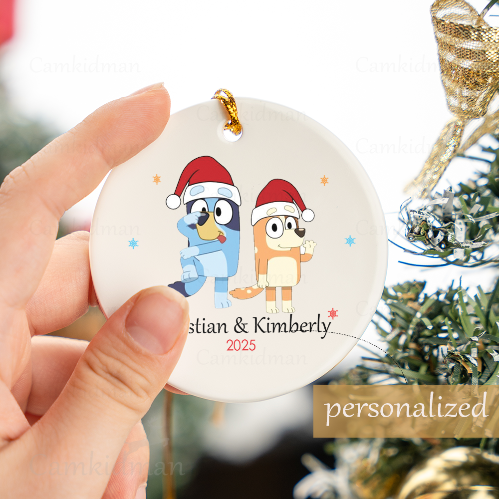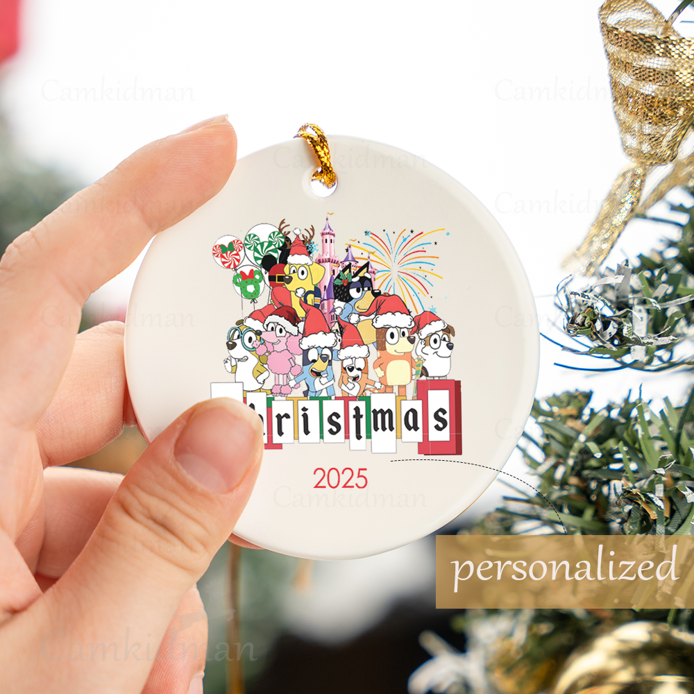 Personalized Name Bluey Christmas Celebration 2025 Christmas Ceramic Ornament Glass Ornament gifts kids