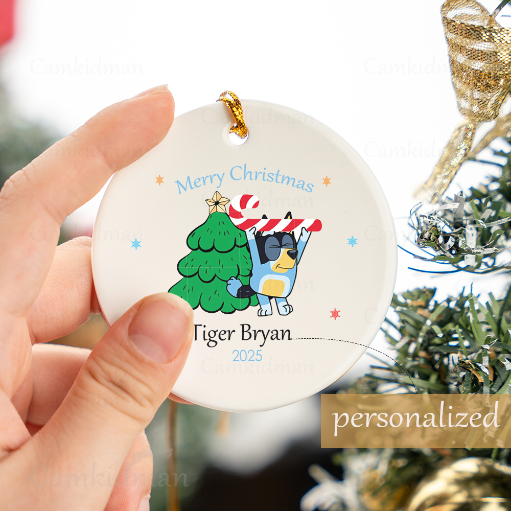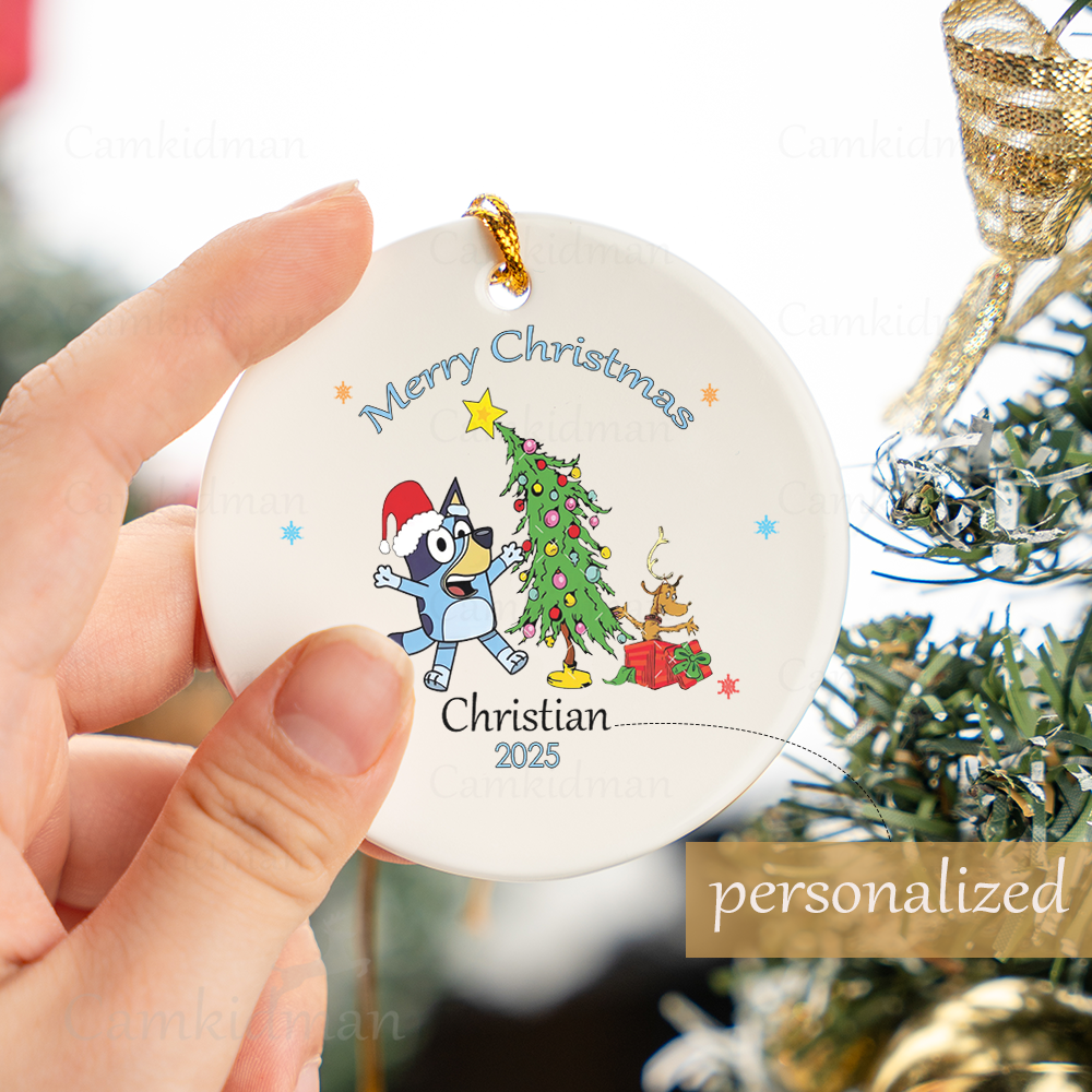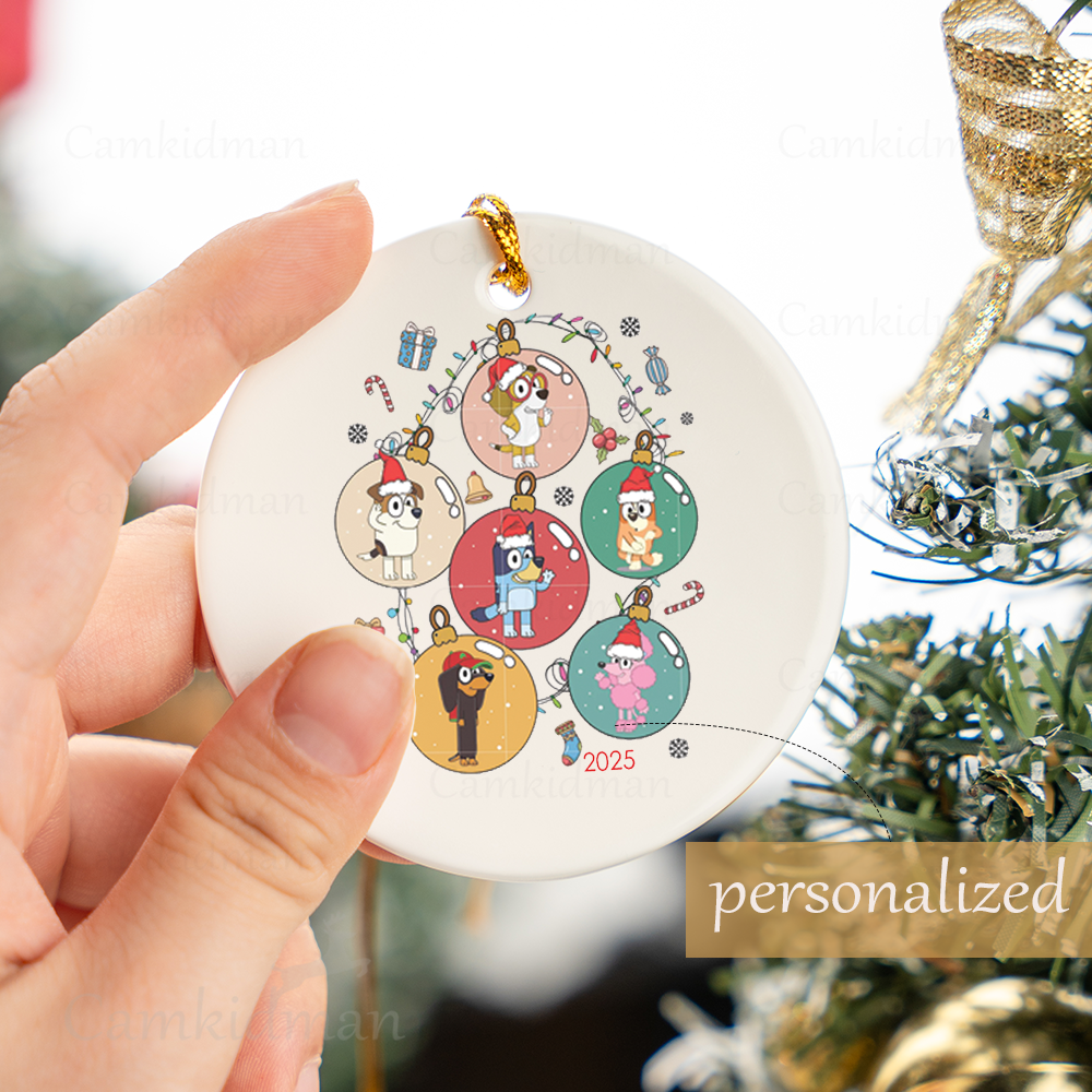 Personalized Name Bluey Christmas Baubles 2025 Christmas Ceramic Ornament Glass Ornament tree