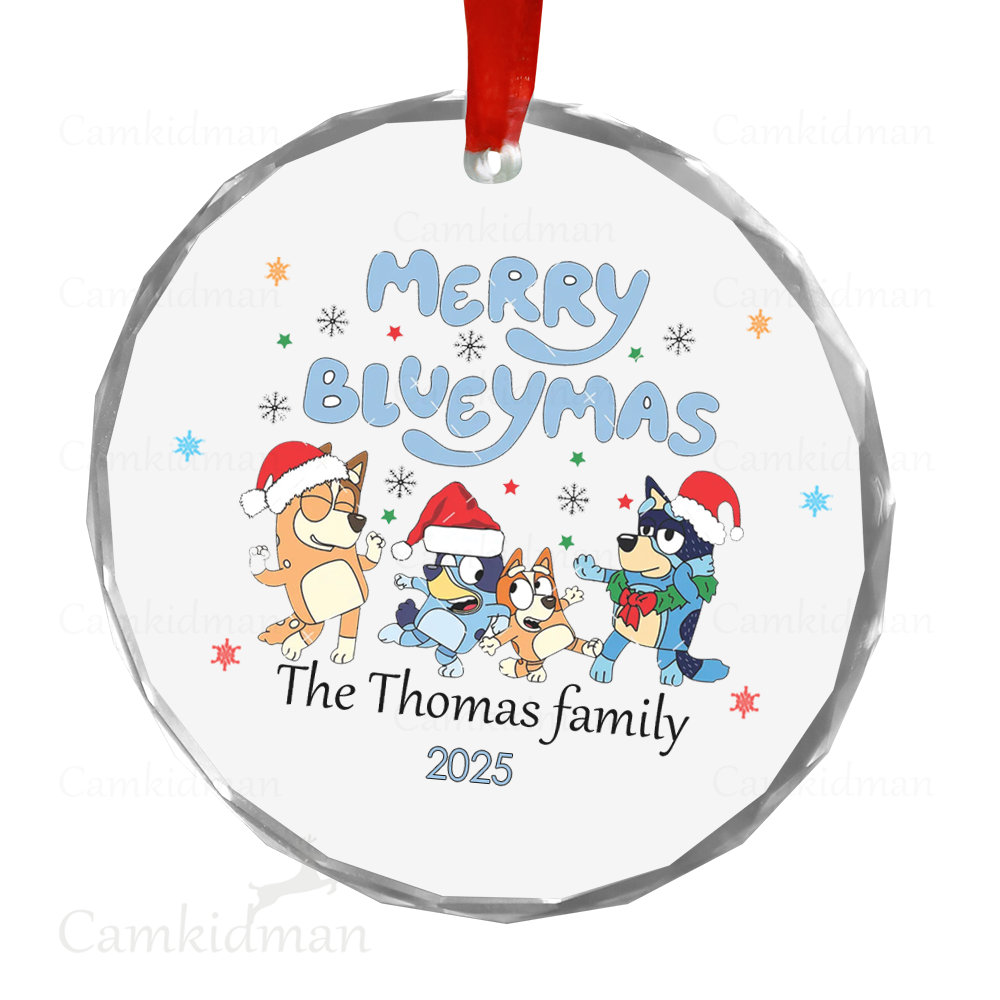 Personalized Name Bluey children’s gifts Christmas Glass Ornament gifts family