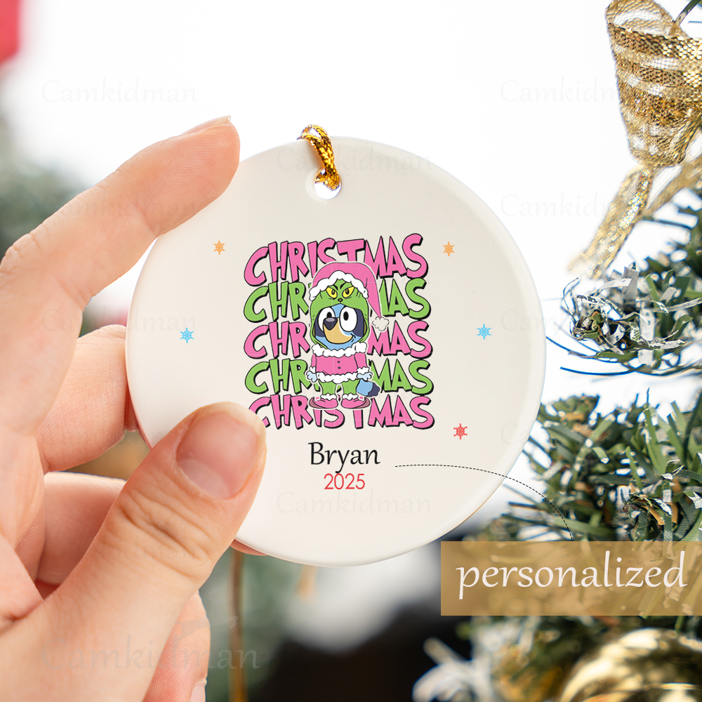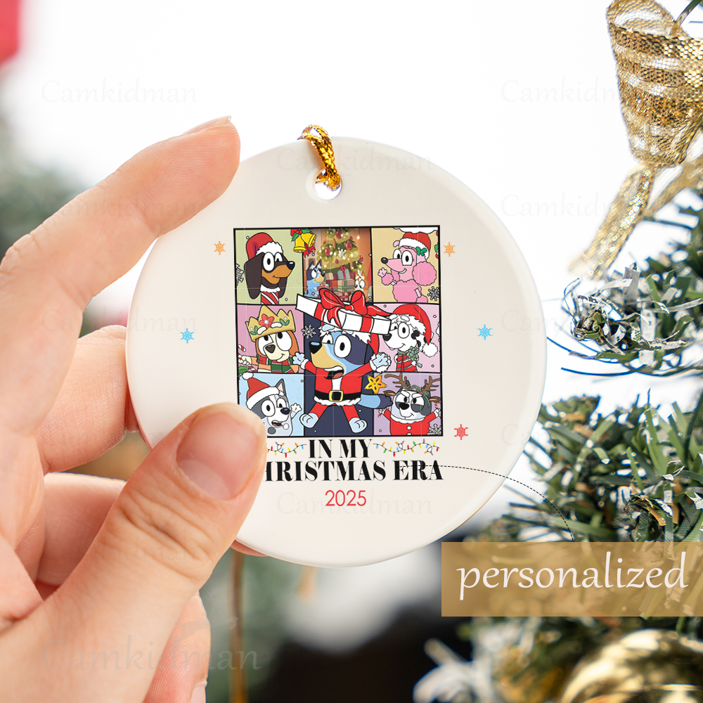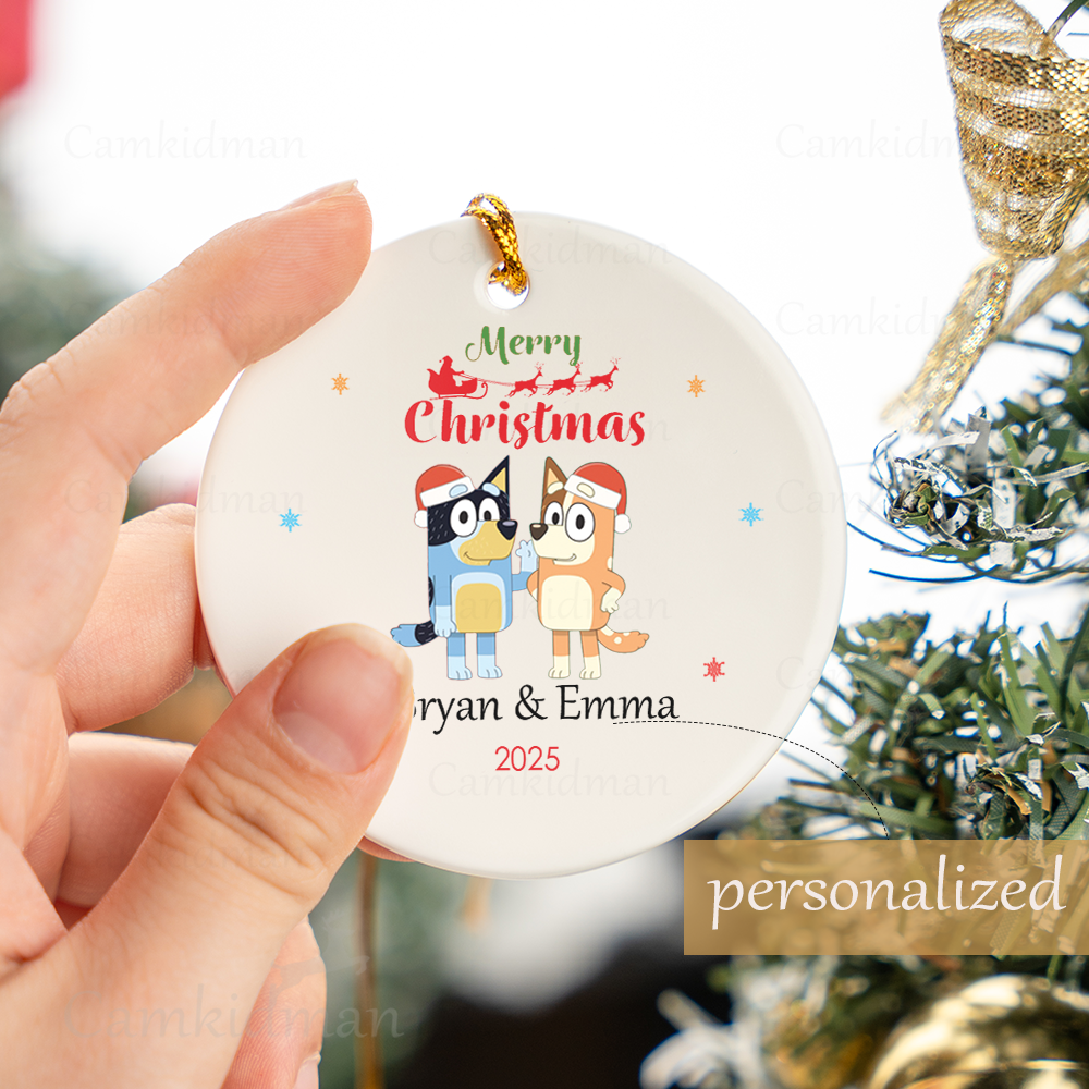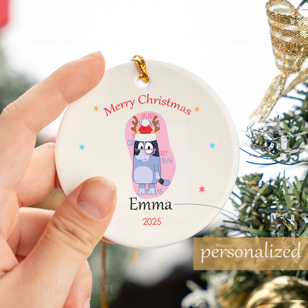 Personalized Name Bluey Christmas Era 2025 Christmas Ceramic Ornament Glass Ornament tree
