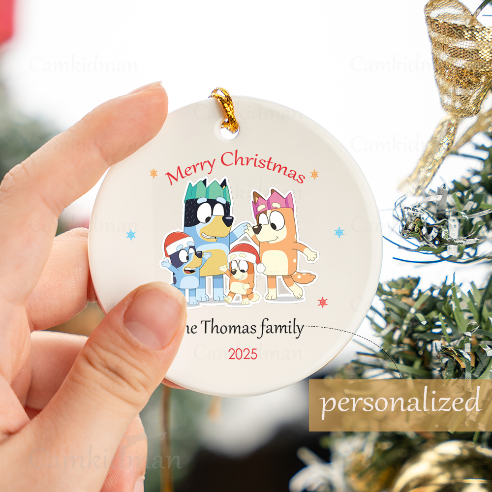 Personalized Name Bluey Custom Name Characters 2025 Christmas Ceramic Ornament Glass Ornament gifts family