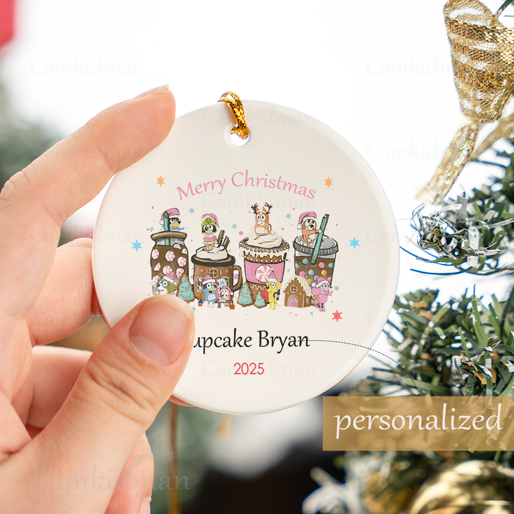 Personalized Name Bluey Cupcake Christmas Ceramic Ornament Glass Ornament gifts family