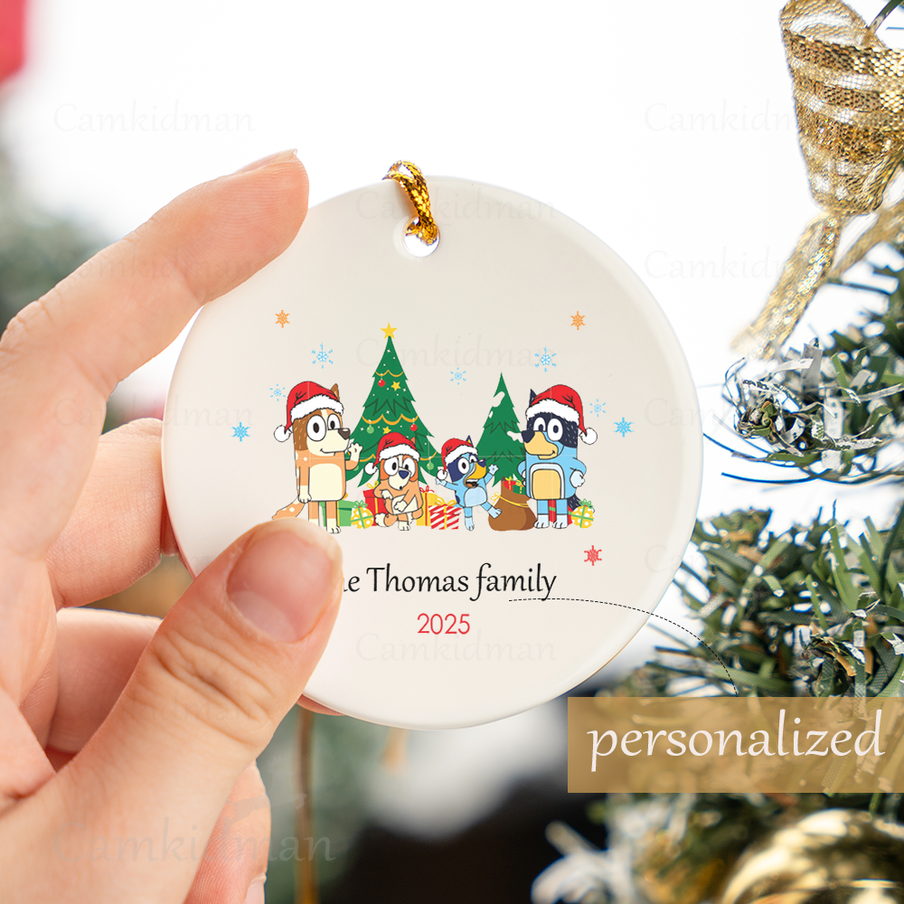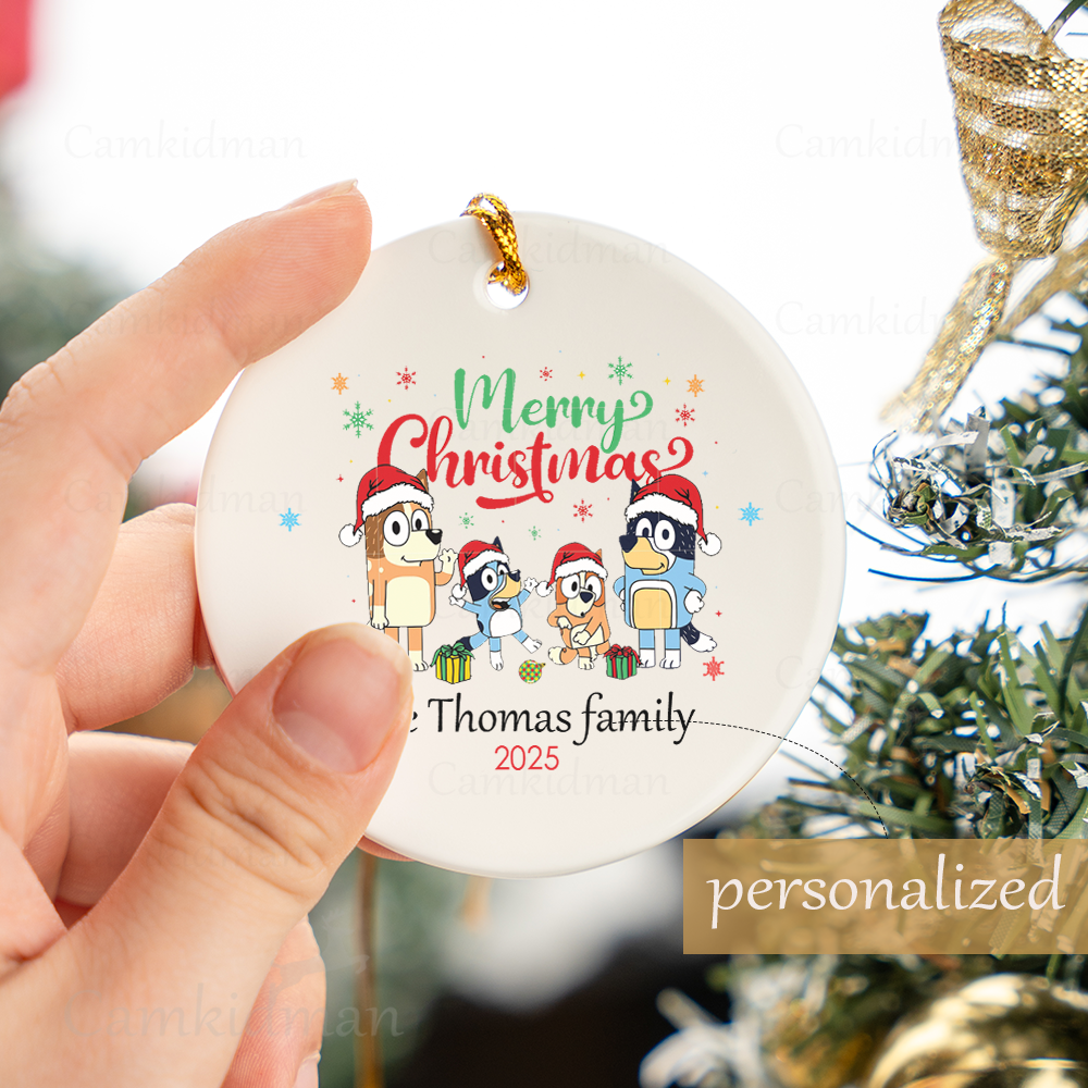 Personalized Name Bluey Family Christmas 2025 Christmas Ceramic Ornament Glass Ornament gifts family