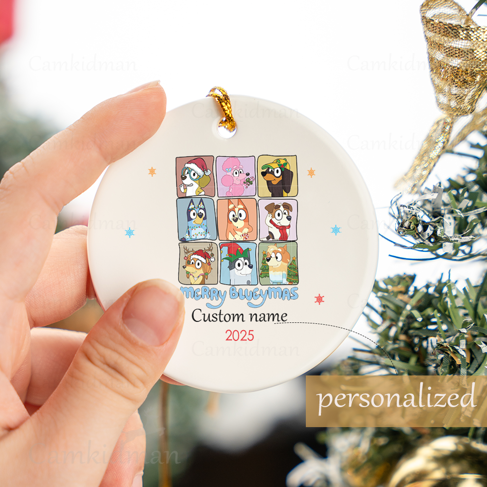 Personalized Name Bluey Custom Name Grid 2025 Christmas Ceramic Ornament Glass Ornament gifts family