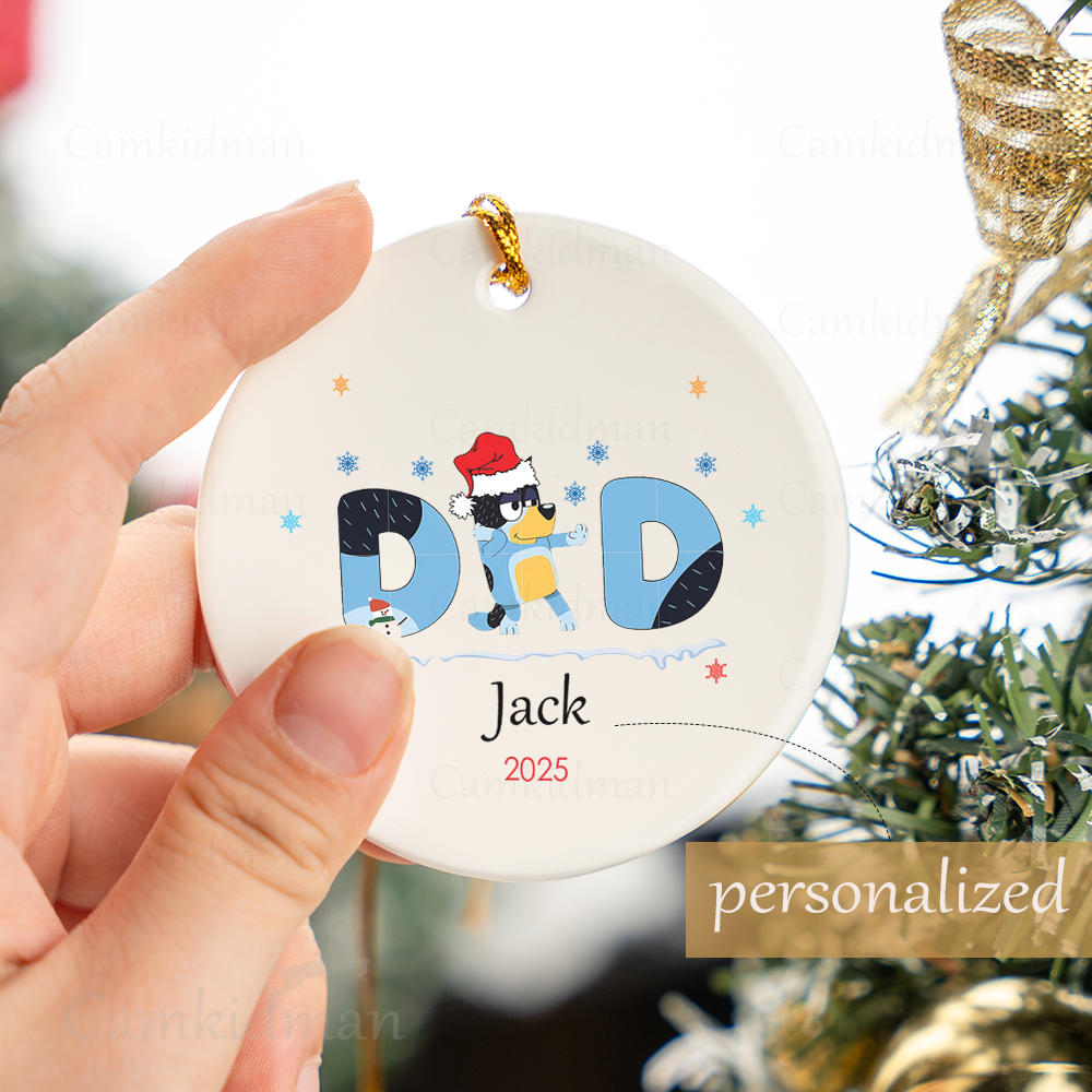 Personalized Name Bluey Dad Ceramic Ornament Glass Ornament 2025 Christmas Ceramic Ornament Glass Ornament tree