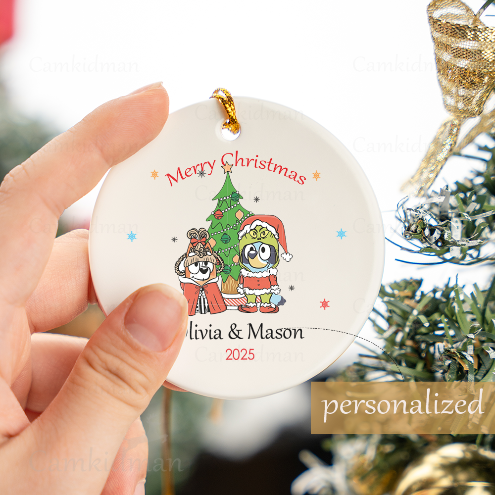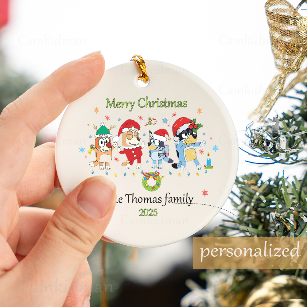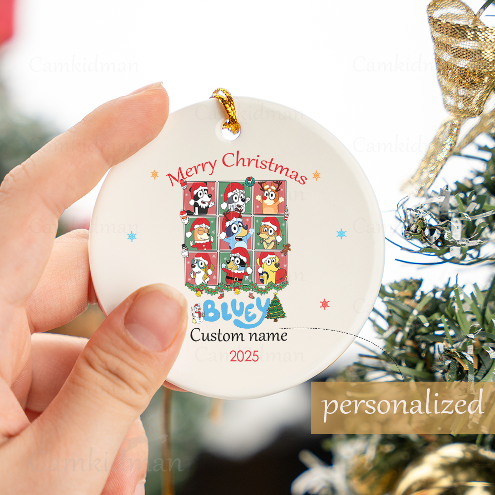 Personalized Name Bluey Puppies Christmas 2025 Christmas Ceramic Ornament Glass Ornament gifts