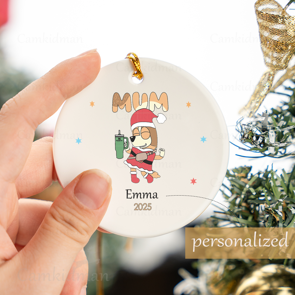 Personalized Name Bluey Mum Ceramic Ornament Glass Ornament 2025 Christmas Ceramic Ornament Glass Ornament gifts