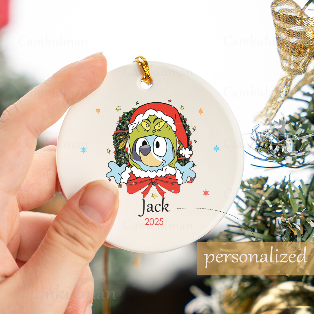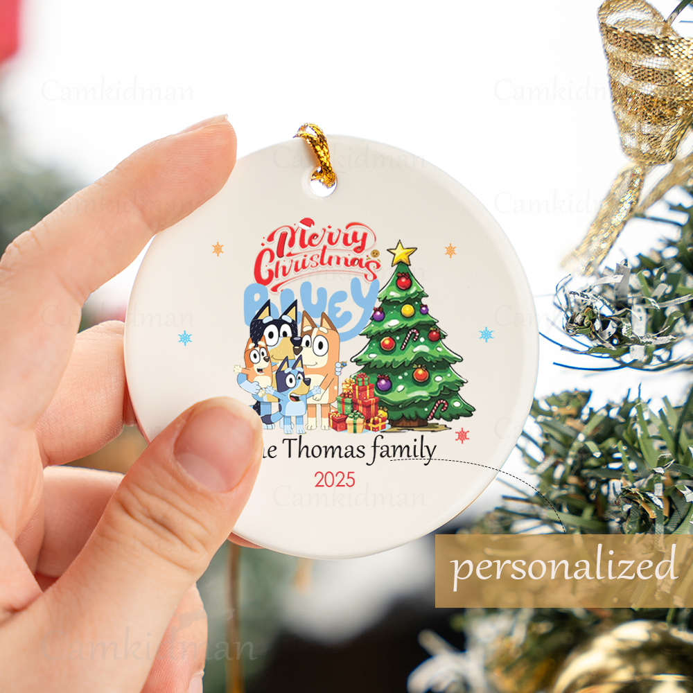 Personalized Name Bluey Tis The Season 2025 Christmas Ceramic Ornament Glass Ornament gifts kids