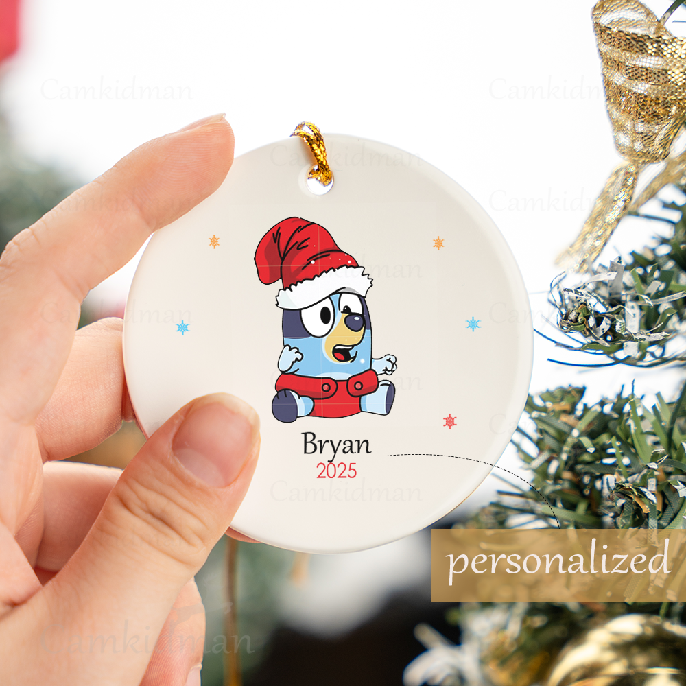 Personalized Name Bluey Puppy With Santa Hat 2025 Christmas Ceramic Ornament Glass Ornament gifts