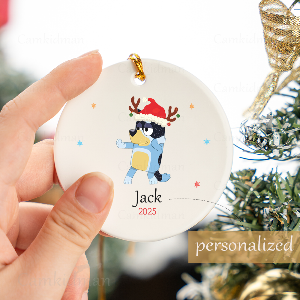Personalized Name Bluey Reindeer Antlers 2025 Christmas Ceramic Ornament Glass Ornament gifts