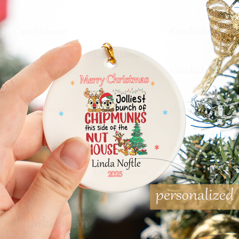 Personalized Name Chipmunks Nut House 2025 Christmas Ceramic Ornament Glass Ornament gifts