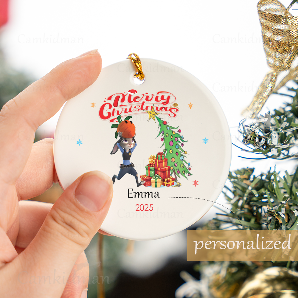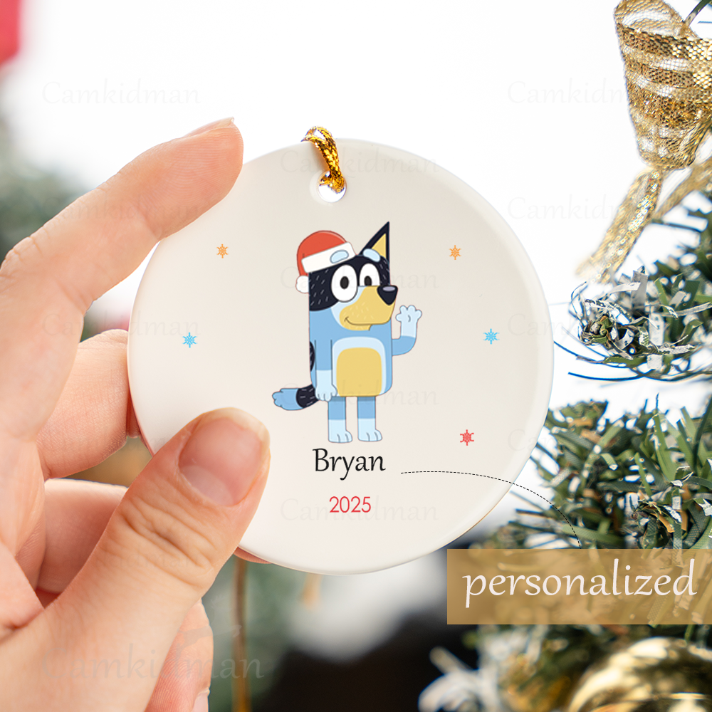 Personalized Name Bluey With Present 2025 Christmas Ceramic Ornament Glass Ornament tree