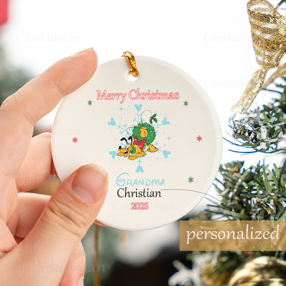 Personalized Name Disney Characters Grandma 2025 Glass Holiday Ceramic Ornament Glass Ornament Keepsake