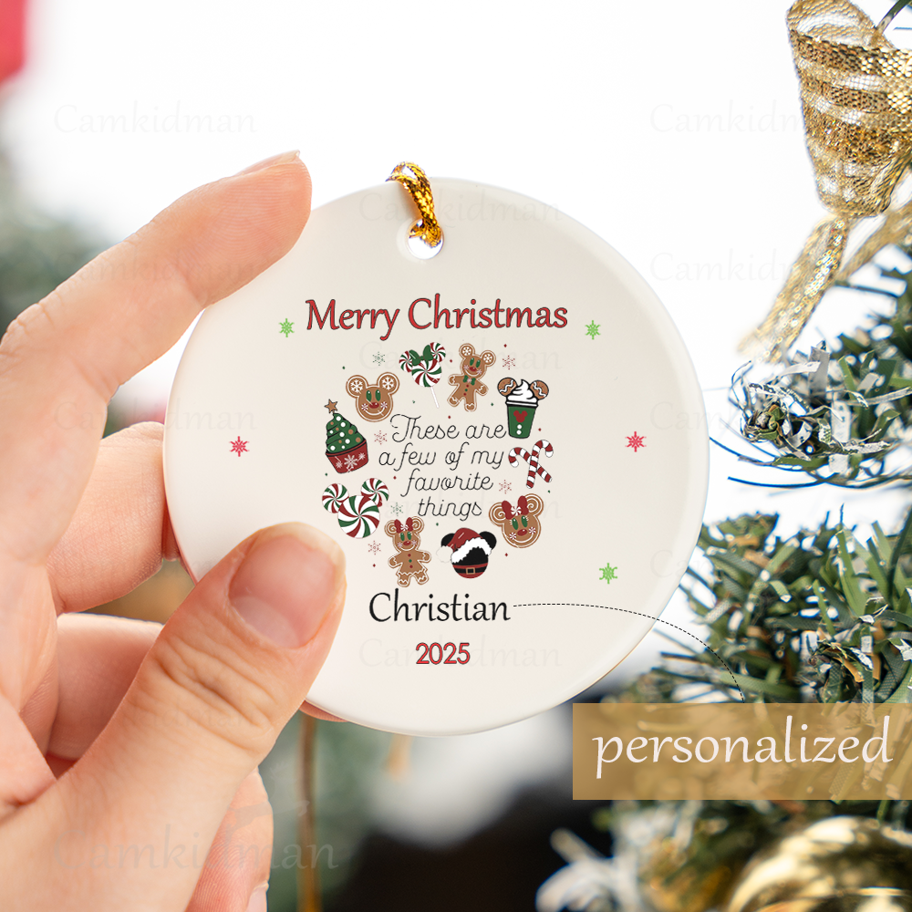 Personalized Name Disney Mickey & Minnie Holiday Scene Ceramic Ornament Glass Ornament 2025 Glass Keepsake 2025