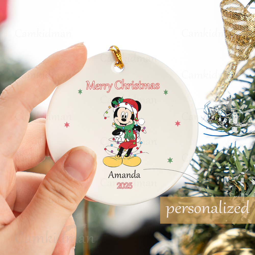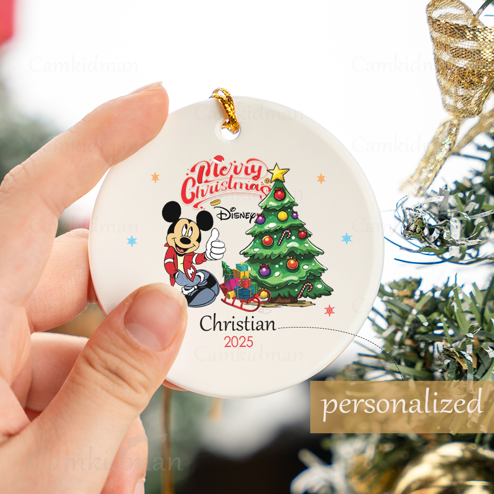Personalized Name Disney Mickey Mouse 2025 with Christmas Tree Ceramic Ornament Glass Ornament