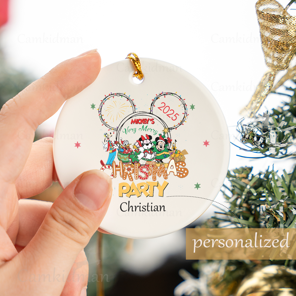 Personalized Name Disney Mickey Minnie Donald Holiday Party Ceramic Ornament Glass Ornament 2025 Glass Decoration