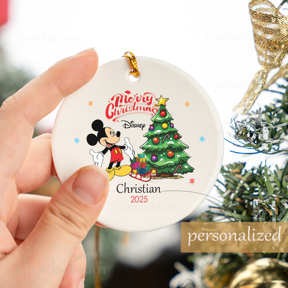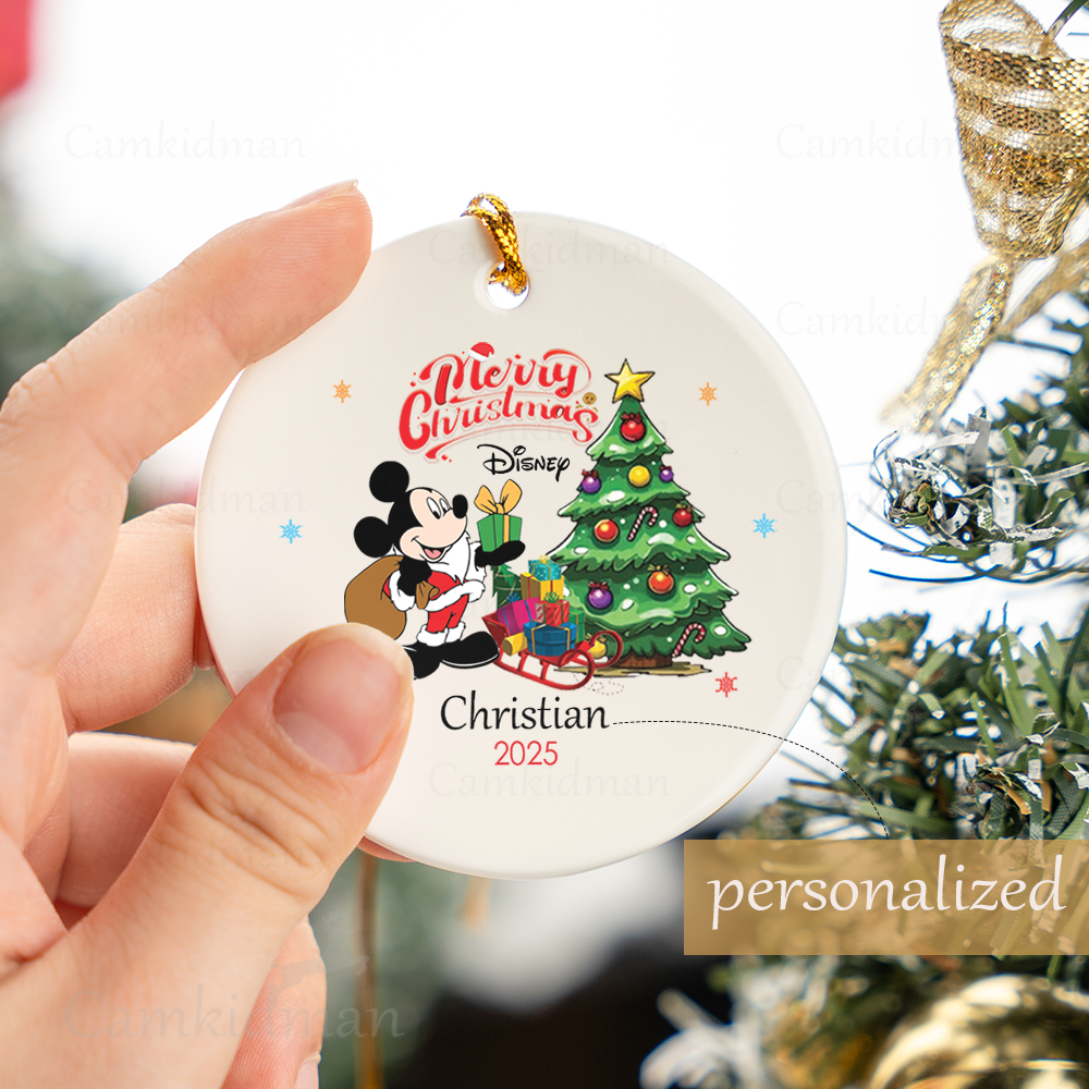 Personalized Name Disney Mickey Mouse with Christmas Tree Ceramic Ornament Glass Ornament